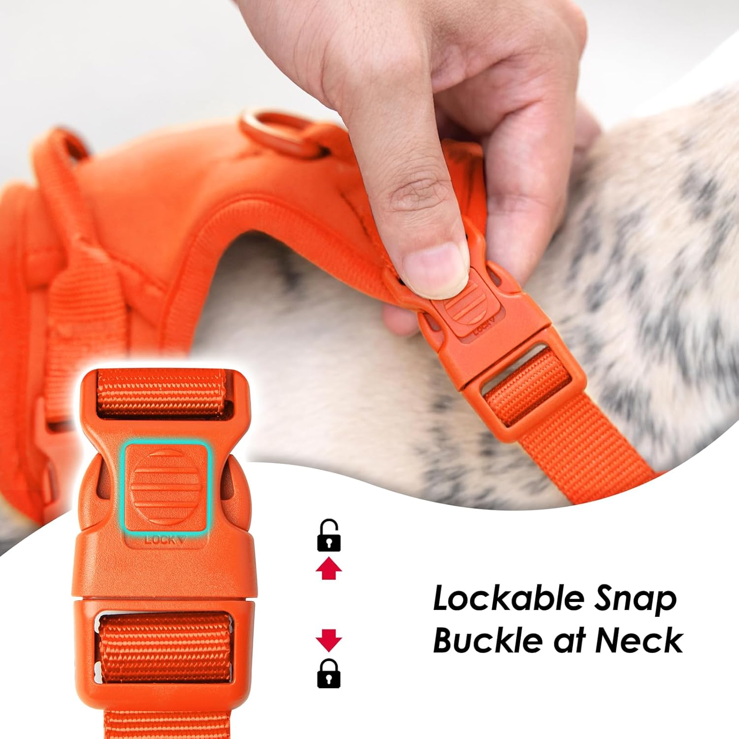 - Easy ON/OFF: It features a quick-release buckle with a lock at neck, ideal for dogs with big heads and small bodies that dislike over-the-head styles. The locking mechanism ensures your dog cannot slip out, offering enhanced safety and comfort during walks. Easy to put on and take off, no need step over your dog's head.