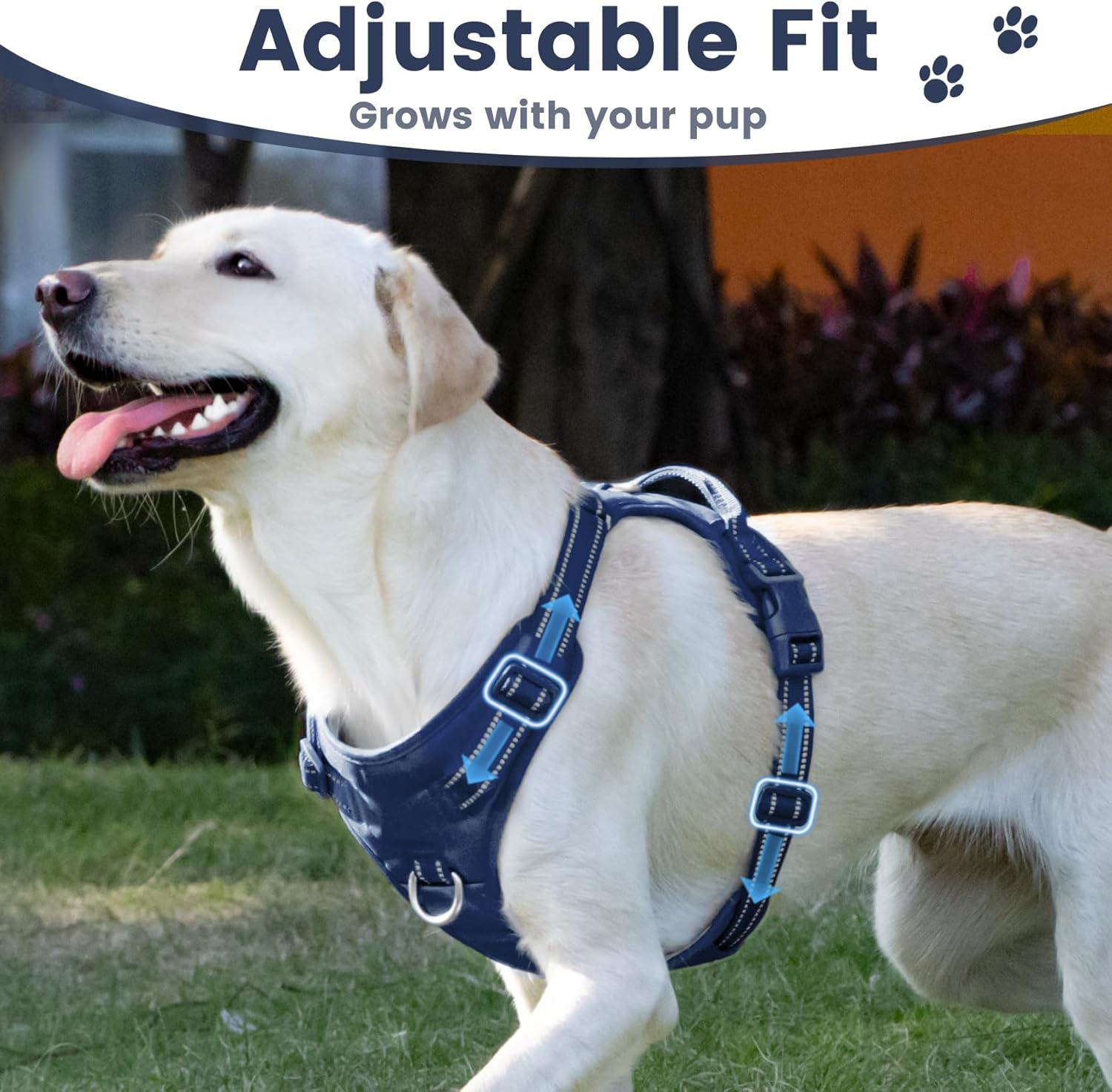 - Easy Adjustment for Perfect Fit: This harness offers 3-way adjustable points, allowing for a precise fit that accommodates various dog sizes and shapes. Quickly and effortlessly adjust for your dog with much room of growth. Achieve the ideal comfort and security with minimal effort.