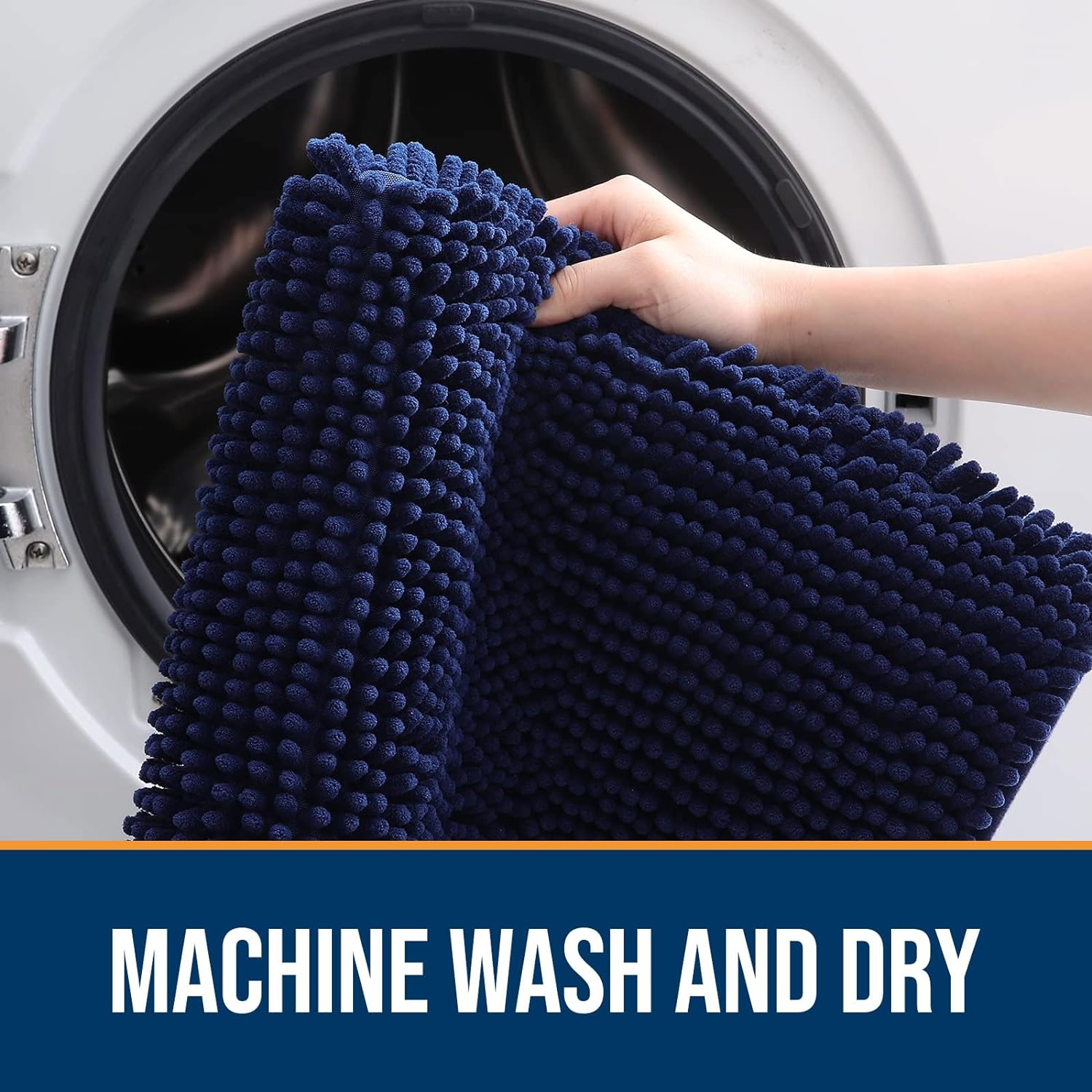 OLANLY Dog Door Mat for Muddy Paws 70x46, Absorbs Moisture and Dirt, Absorbent Non-Slip Washable Doormat, Quick Dry Chenille Mud Mat for Dogs, Entry Indoor Entryway Carpet for Inside Floor, Navy Blue