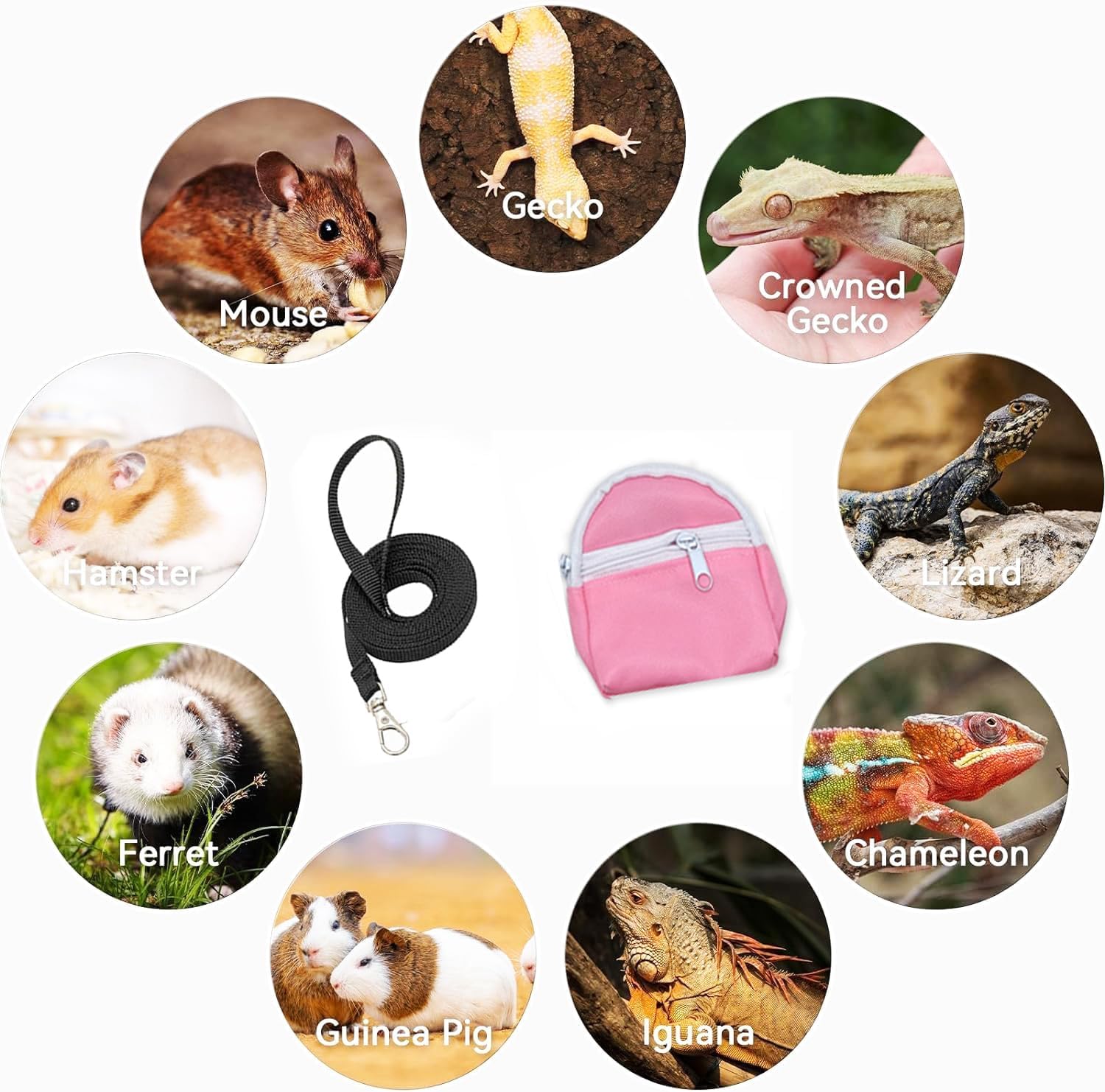 - The harness leash for small reptile is a gift for you cute pets, with the bearded dragon harness leash you can easily have relaxing time with your pets by walking them outside to get some fresh breath. Our harness leash with a small backpack decorate your pet,at the same time the adjustable shoulder strap effectively prevent any chance of escape.