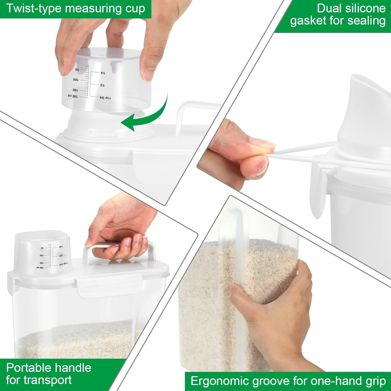 - AIRTIGHT SEAL RICE STORAGE: The side-locking lids with silicone seal keep out moisture, always keeping your food super fresh and dry