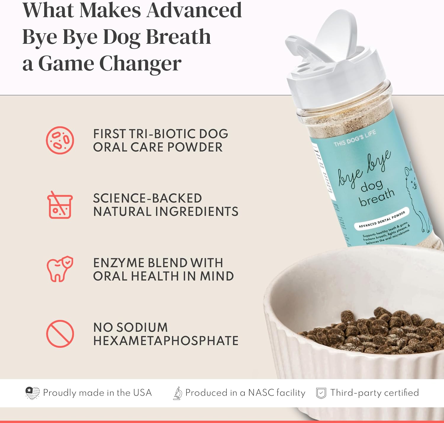 - Made with High-Quality Ingredients: Made in the USA with proven research-backed ingredients for dog oral care. We use U.S. and globally sourced ingredients that meet GRAS and AAFCO standards in a NASC-certified facility. Each bottle contains up to 80 servings (based on weight guidelines).