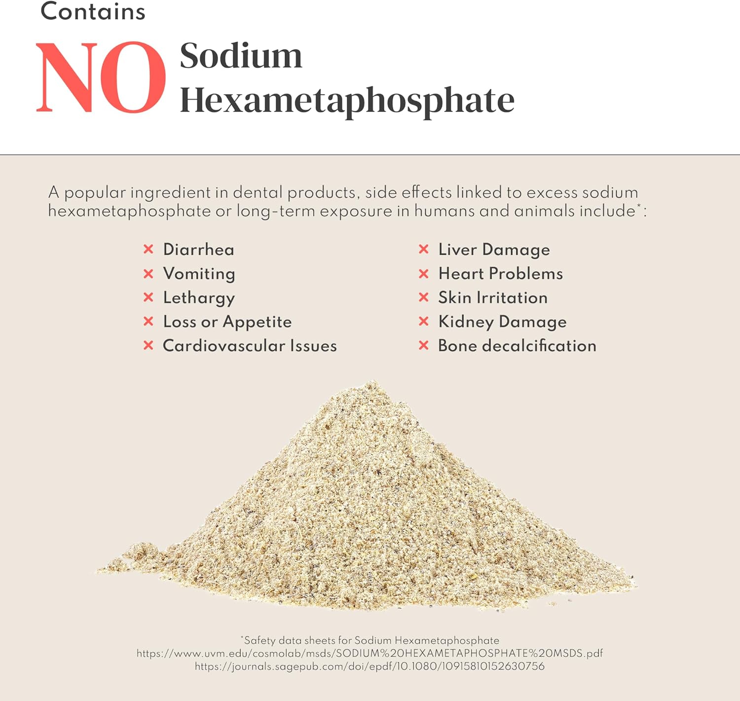 - Free from Common Chemicals: Our dog dental powder is free from harsh additives, including sodium hexametaphosphate, chlorhexidine, and carrageenan. It is also free from artificial flavors, fillers, and preservatives. Great for pet parents seeking a more holistic approach.