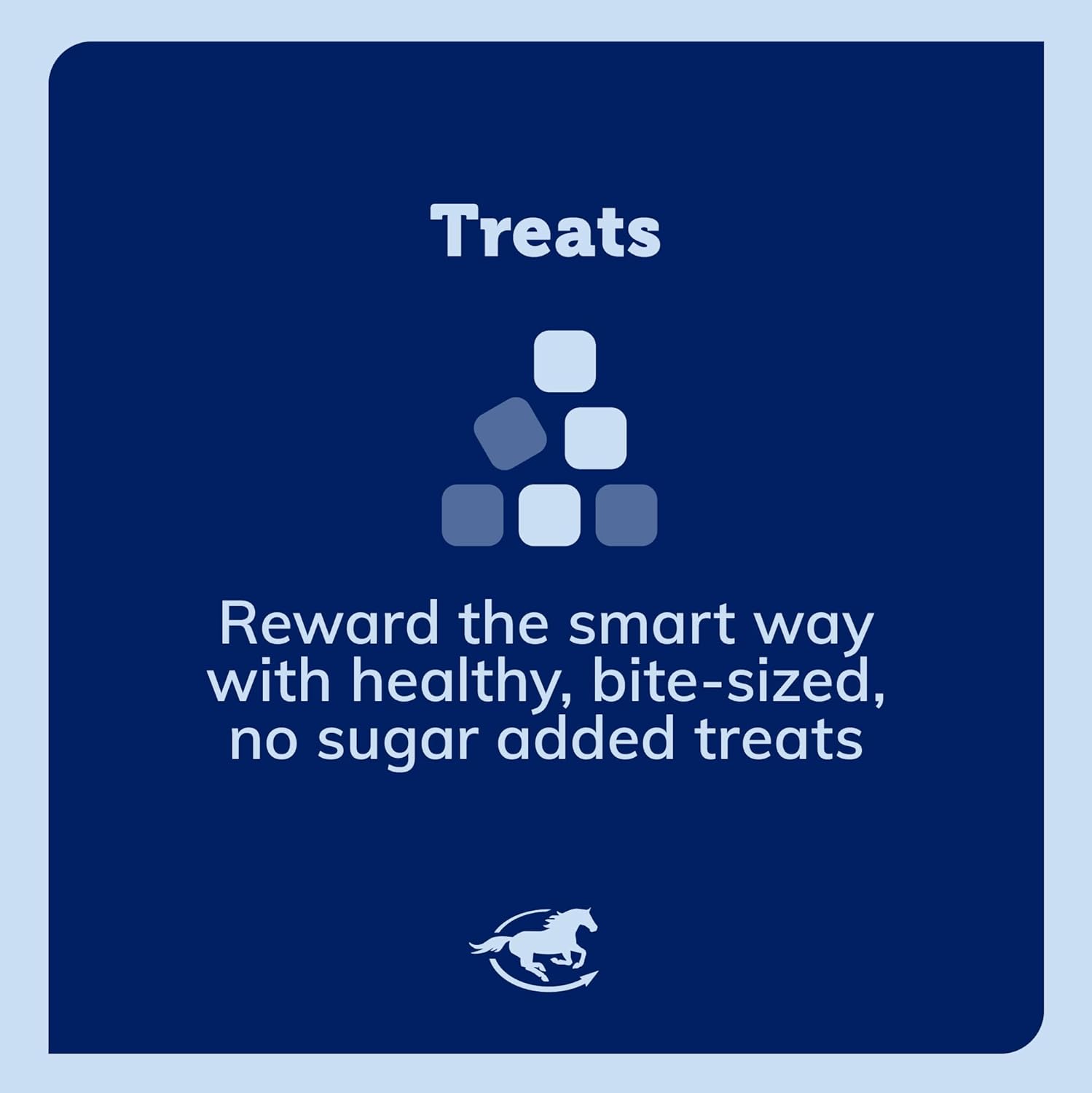 - Bite-Sized Flavor: Equi Treats come in small, bite-sized pellets, making them suitable for use on the go or as a bonus to their daily feed—other suggested applications are as training treats