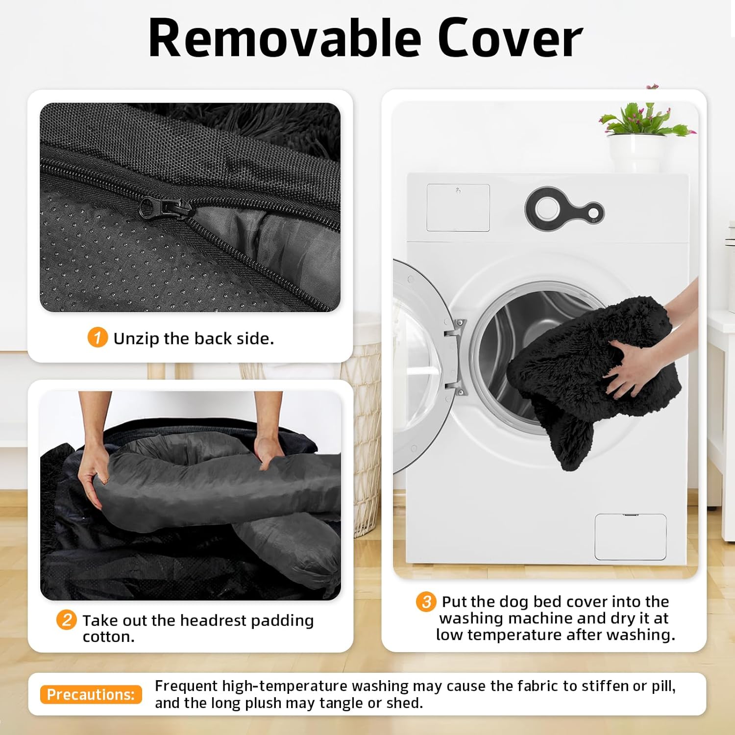 - 【Easy to Care】The washable dog bed has a zipper at the bottom, which can be easily removed. It can be hand-washed or machine-washed. Drying at low temperature after washing can make the surface fluffy.