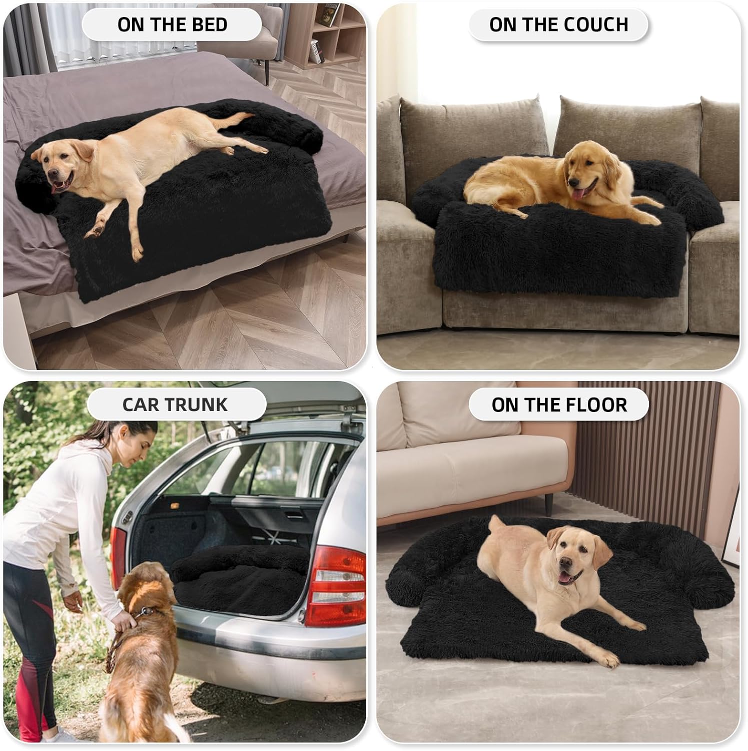 GGIB Calming Dog Bed Fluffy Plush Dog Mat for Furniture Protector with Removable Washable Cover for Large Medium Small Dogs and Cats (Extra Large (53x39.3x6), Black)