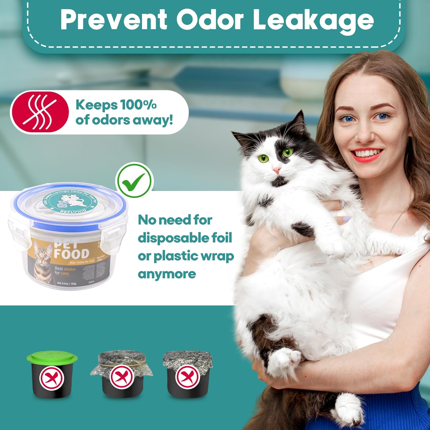 - SAY GOODBYE TO USING PLASTIC WRAP: No more plastic lids, aluminum foil and plastic wrap for canning lids. These clear canned cat food containers allow direct access to the food, isolate odors, are easy to use, and keeps the freshness of your pet's canned food