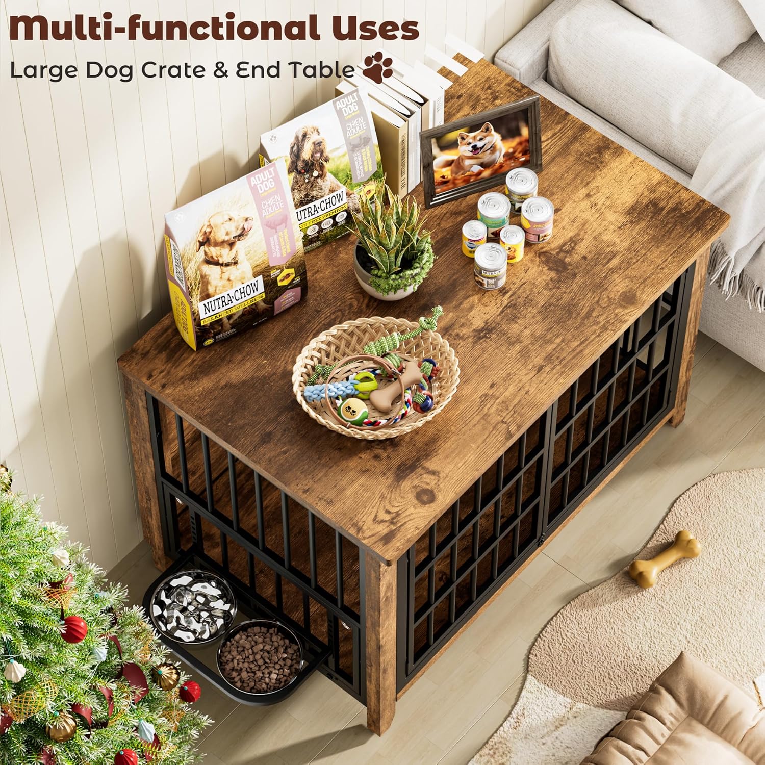 - ๐ 1 Crate, 3 Uses: As a multi-purpose dog kennel furniture can provide a comfortable haven for your dog, also helping maximize the utilization of space in your home. Perfect as a side table or nightstand for storage needs for you and easily blends in with your home decor.