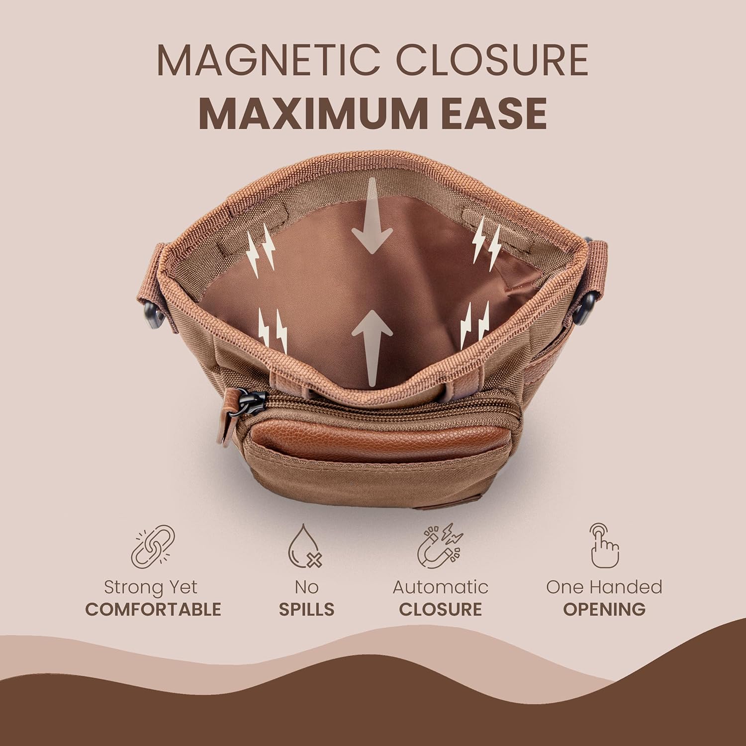 - 【EFFORTLESS ONE-HANDED ACCESS】 - The magnetic closure of this puppy treat pouch ensures fast access to treats, allowing you to reward your dog effortlessly during training sessions or walks without breaking the flow.