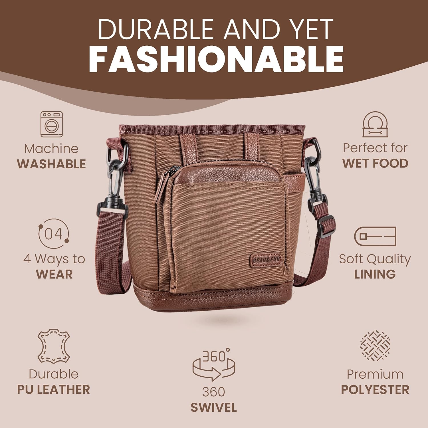 - 【STYLISH AND FUNCTIONAL】 - Upgrade your dog walks with this sleek and functional Dog Training Treat Pouch. Its modern design enhances your look while providing a practical solution for carrying essentials.