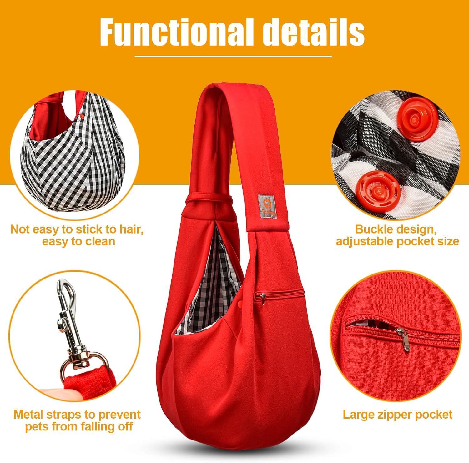 Tomkas Small Dog Sling Carrier - Zipper Pocket & Classic Strap - for 3-10 lbs Pets(Red)