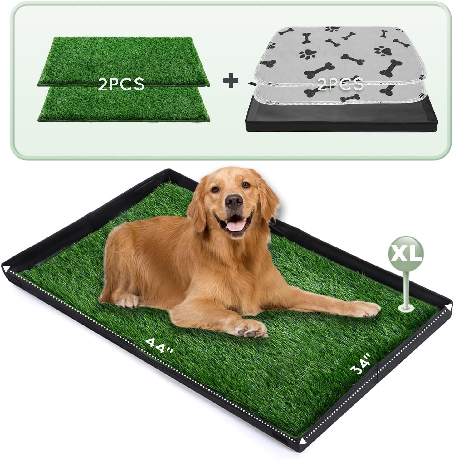 - SIZE OPTION : Extra large foldable dog litter box(44”×34”) for large dogs (60lbs to 100lbs) like Labrador, Husky, Golden Retriever. Please check the size chart picture to make sure which one is suitable for your dog. XL for 60-100lbs, L for 10-60lbs, S for 3-10lbs