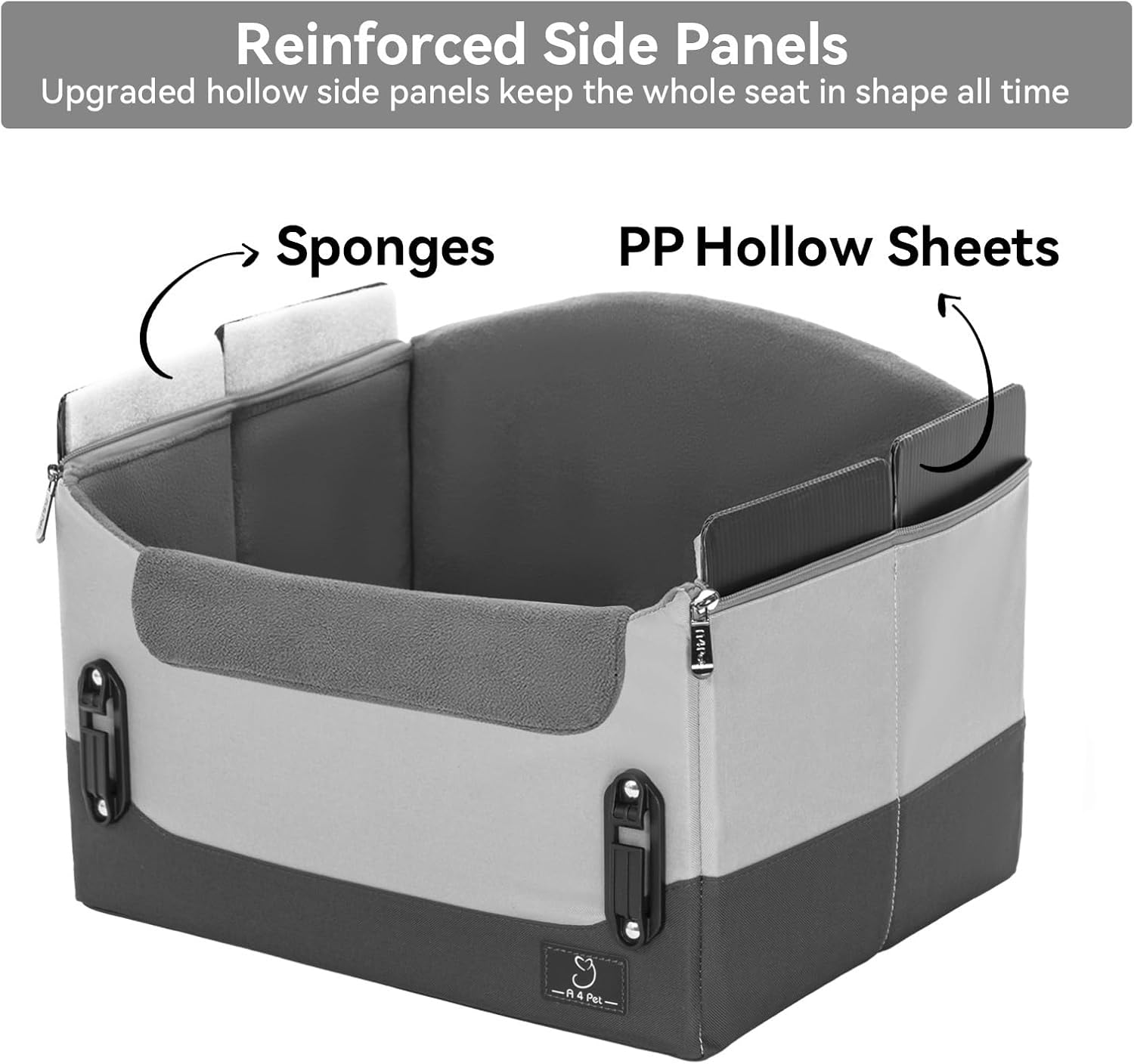 A4Pet Dog Car Seats for Small Dogs, Booster Car Seat with Patent Buckles & Clip-On Safety Leash, Pet Seat for Puppy Small Dogs Cats Under 25 Lbs, Grey