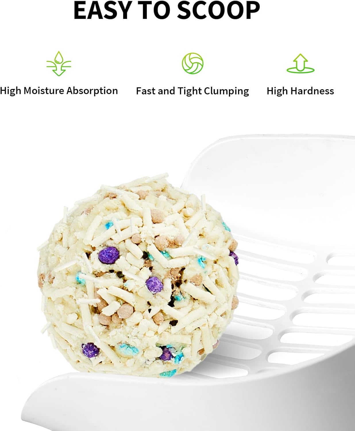 - INSTANT WATER ABSORPTION AND TIGHT CLUMPING: Bentonite litter instantly absorbs liquid from cat feces and urine, crating a cleaner environment for your cats. The cat litter forms solid clumps in just 3 seconds with strong liquid absorbency. Its non-stick feature helps minimize residue on the base, making it easy to scoop.