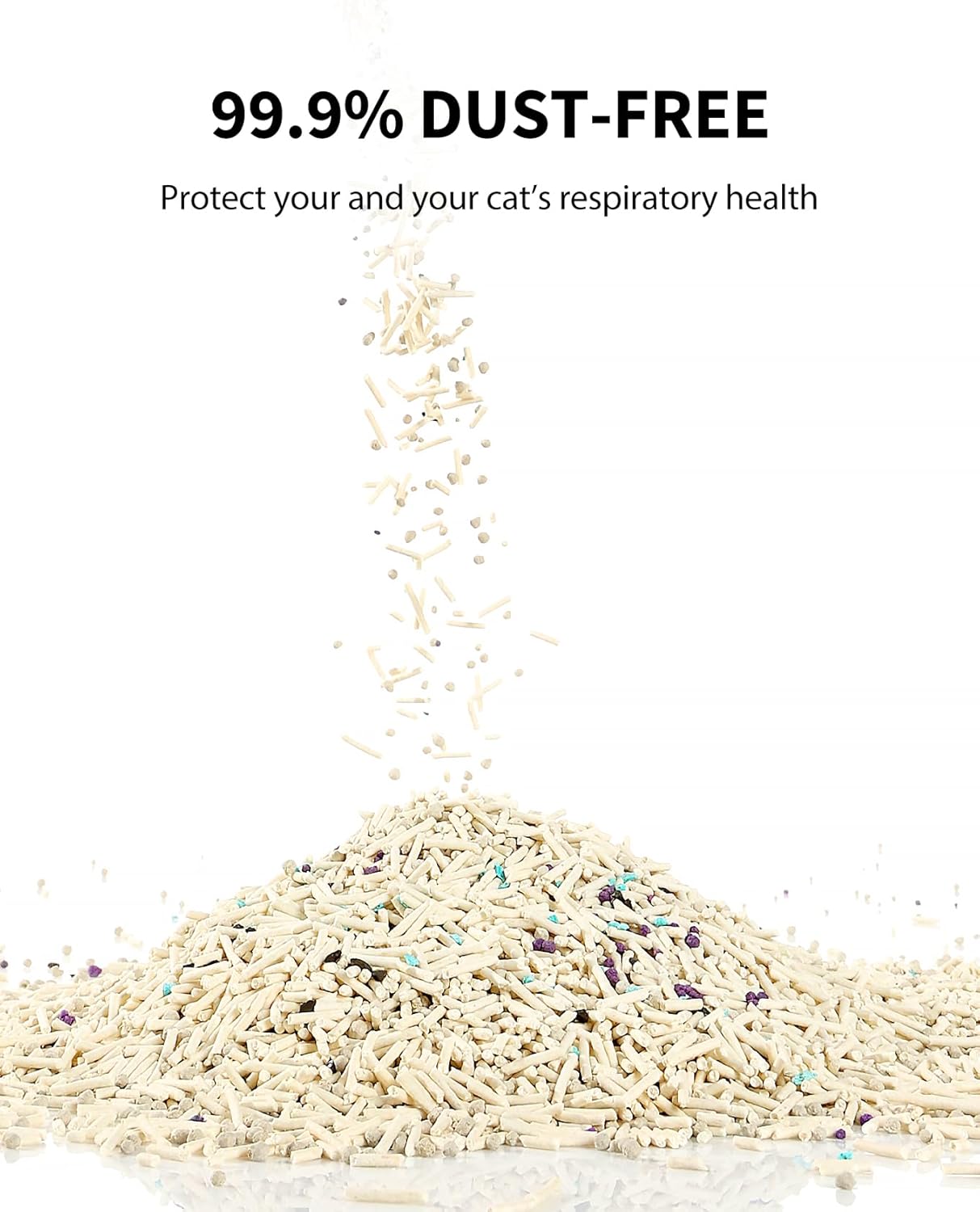 - LOW TRACKING AND DUST FREE: The larger granules of the cat litter reduce tracking by minimizing adherence to your cat's paws, keeping floors clean. Going through advanced 7 stages of dust removal process, this 99.9% dust-free cat litter prevents airborne particles during refills and waste covering, caring for the respiratory health of you and your cats.
