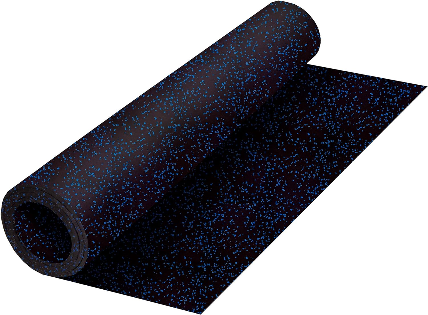 Playsafer Genaflex Rubber Gym Floor Mat, Heavy Duty Commercial Protective Gym Flooring Roll - 8mm Thick (10% Blue, 4' X 4')