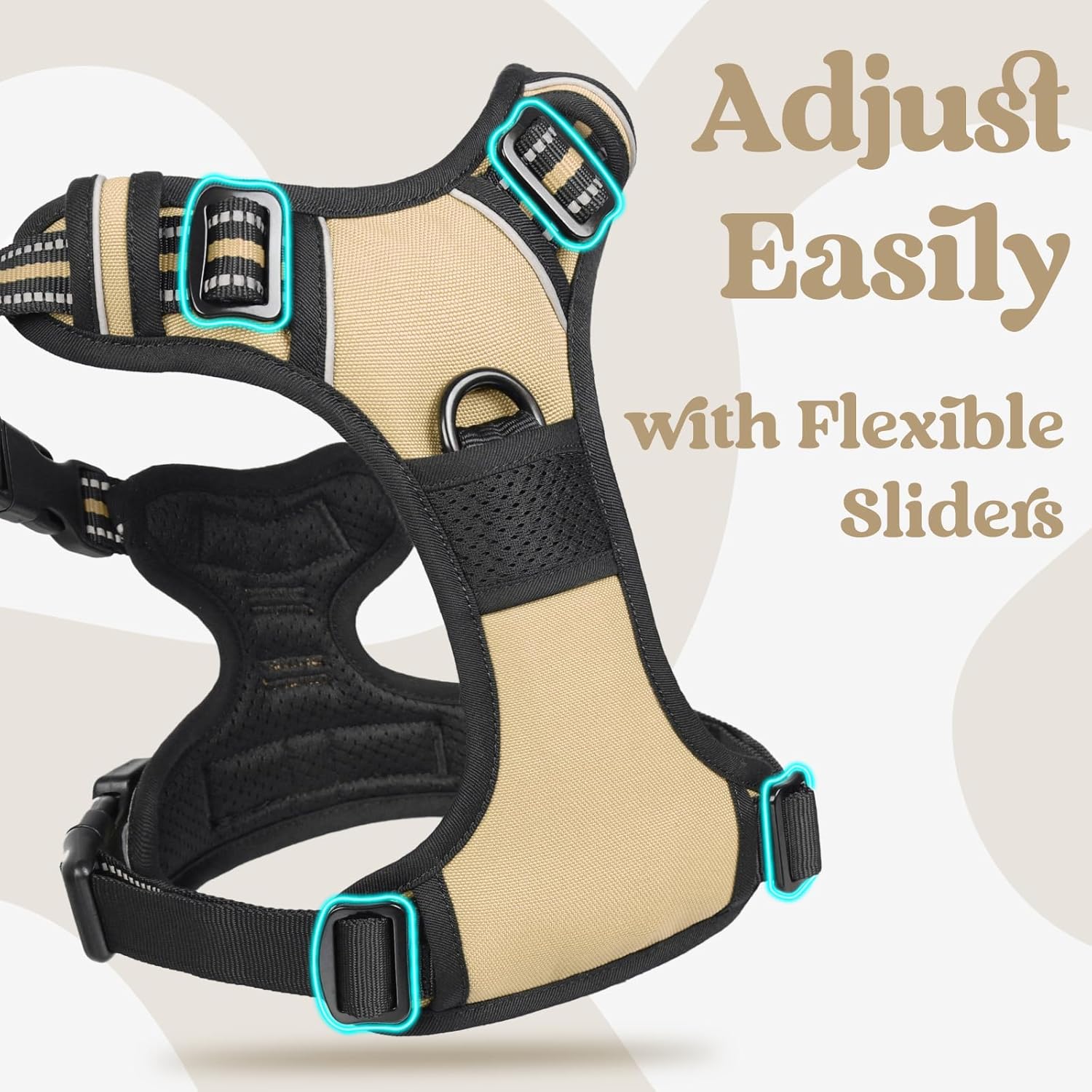 rabbitgoo Dog Harness for Large, No Pull Pet Harness with 3 Buckles, Adjustable Soft Padded Vest with Control Handle, Walking Reflective Pet Vest for Extra Large Dogs, Beige, XL