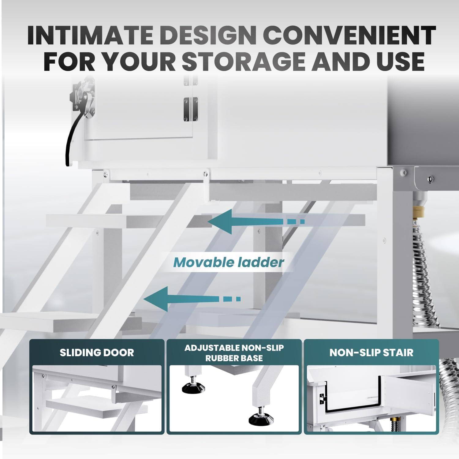 Dog Washing Station for Home, 38" White Professional Stainless Steel Dog Grooming Tub, Height Adjustable Dog Bathing Station, Upgrade Parts, Dog Bath Tubs for Small & Medium Dogs(Left Stair)