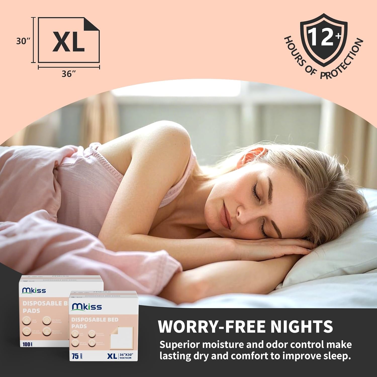 - Super Absorbent with 6-Layer Protection: MKISS disposable bed pads feature a super absorbent polymer core, locking in up to 1800ml of liquid instantly.Perfect for adults, elderly, babies, and pets, these incontinence pads absorb quickly, keeping surfaces dry without swelling or leakage