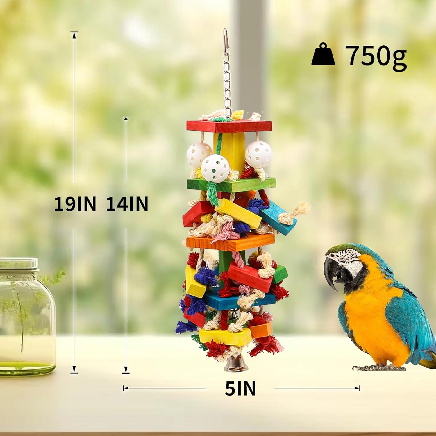 Interactive Parrot Toys for Large Birds, Cockatoo, Cockatiel, and Parakeet Toys, Original Wooden and Natural Material, Fun Durable and Eco-Friendly Bird Cage Toy