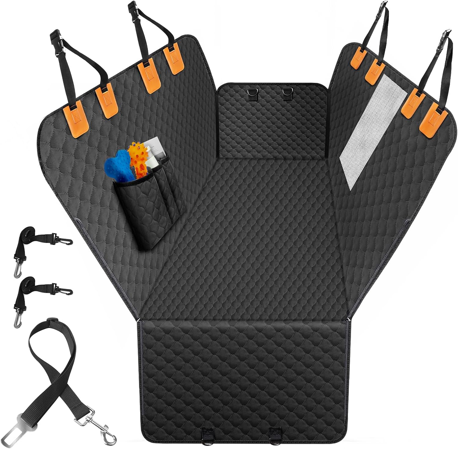 Dog Car Seat Cover for Back Seat, Waterproof Protector with Side Flaps, Scratchproof Hammock, Non-Slip Bottom for Cars/Trucks/SUVs (Black02)