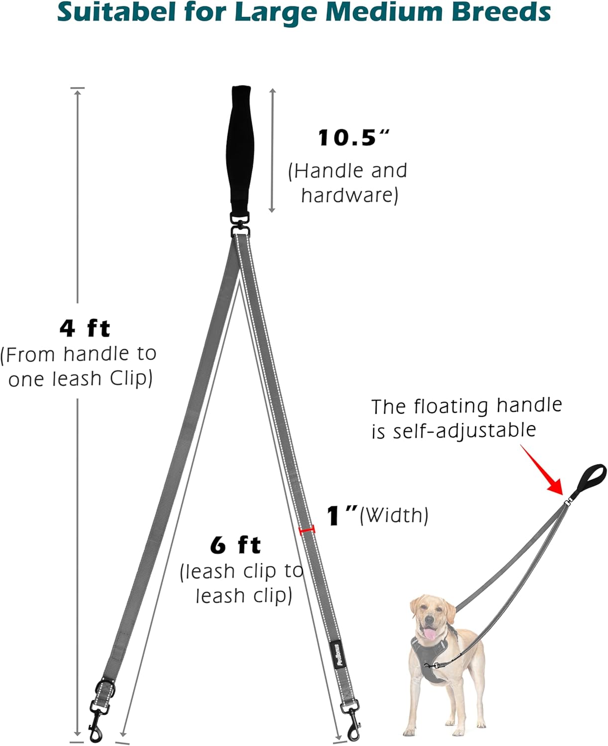 PetBonus Two Point Control Dog Leash, Works with No Pull Harnesses, No Tangle Dog Training Leashes, No Pull Padded and Reflective Walking Lead, Converts to Single Leash for Medium Large Dogs (Grey)
