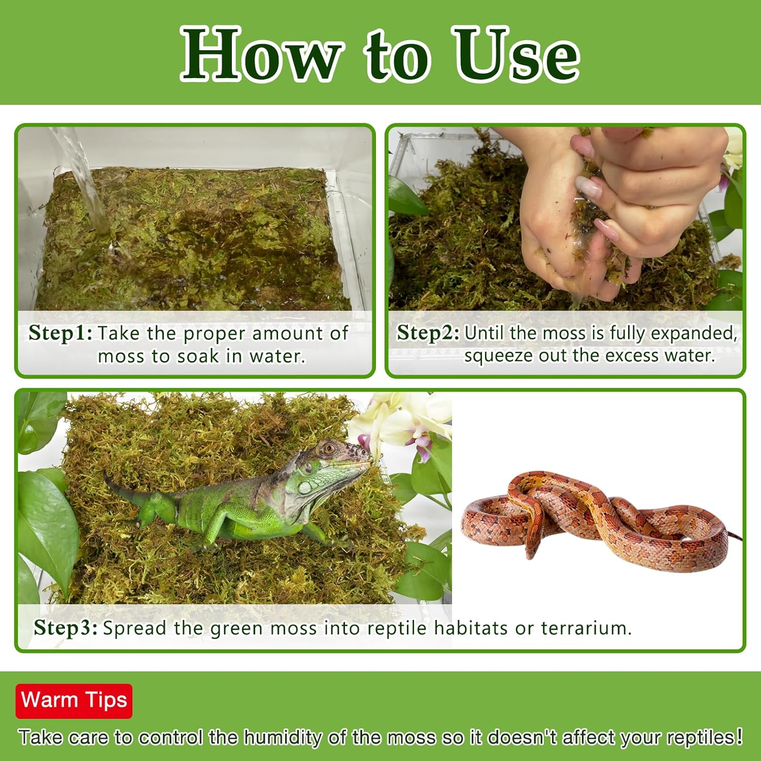 - Great Humidity Retention & Breathability: This terrarium moss is fluffy and absorbent, can provide a moist living environment for your reptiles. The moss also has an insulating effect, which will help the reptiles have a safe and cozy winter.