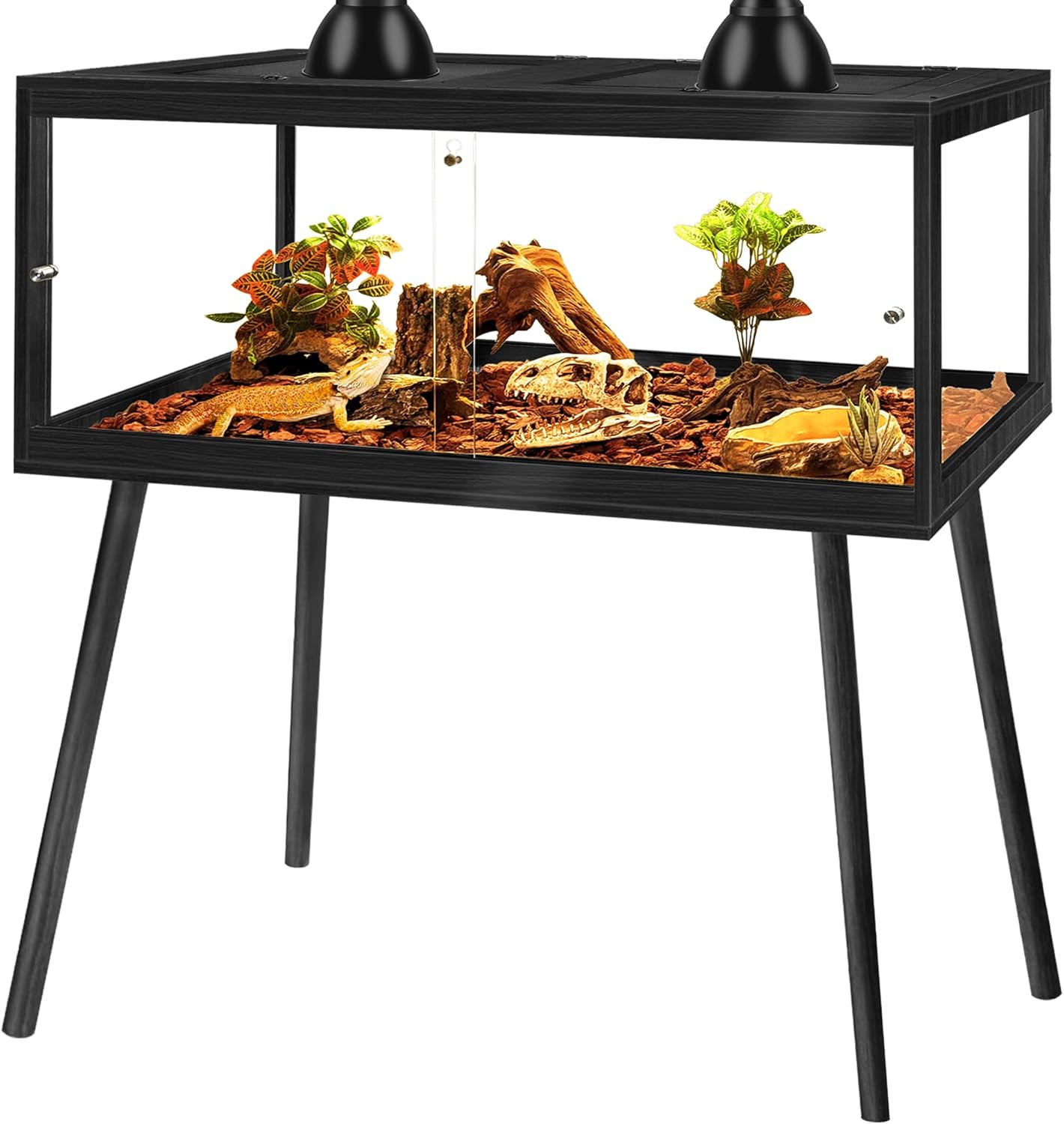 - 【Spacious Elevated Design】Available in 24", 30", 36", and 48" lengths with a raised 4-legs design(please refer to pic2 for exact size), this habitat offers ample room for reptiles to explore, bask, and hide. Refer to the second image for detailed sizing to select the best fit for your pet. The bottom includes an acrylic liner that makes cleaning easier while keeping the interior tidy.