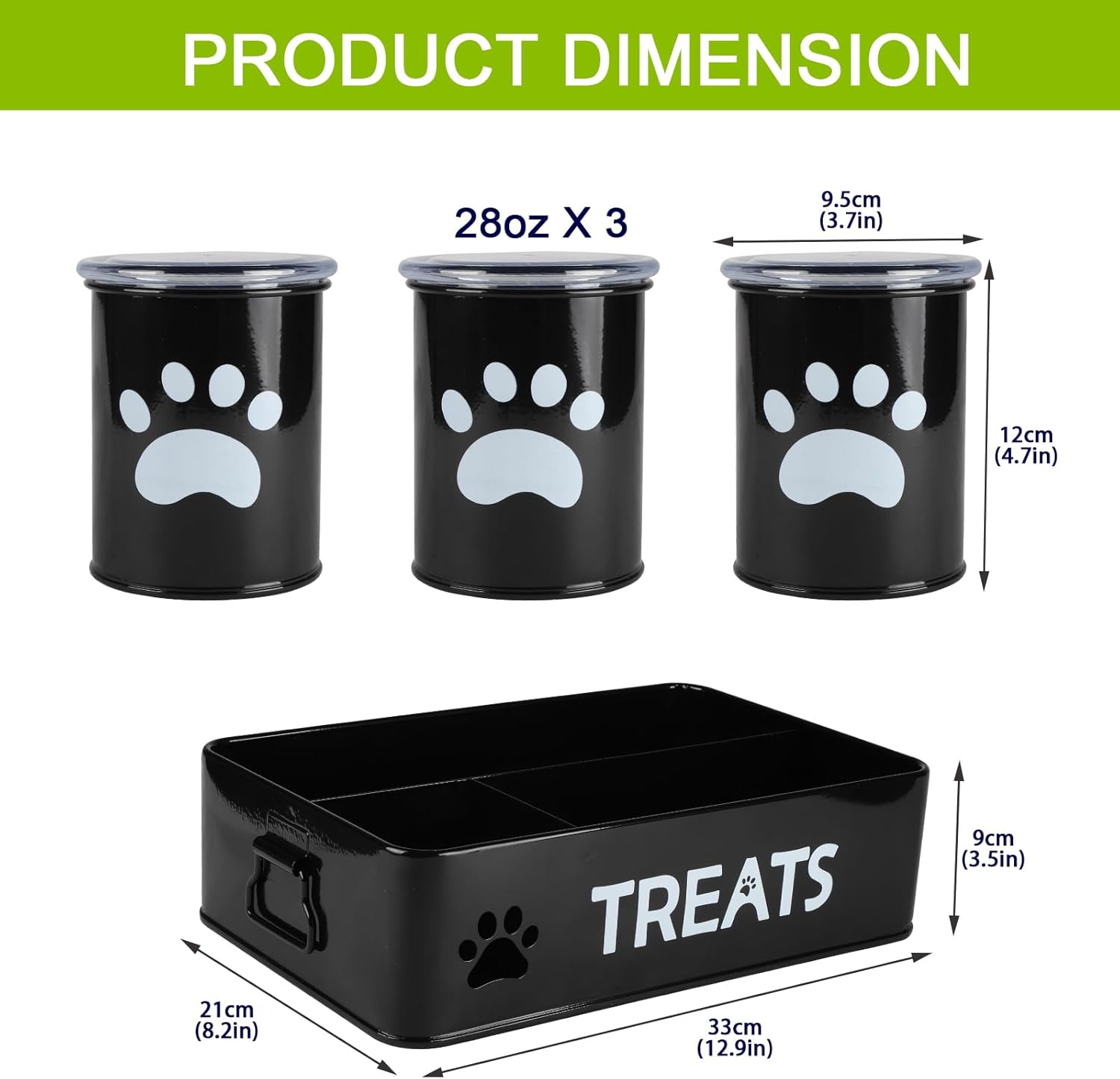 - 【 Medium capacity】 -Holds 28 ounces each jar and measures 3.74" D x 4.72 H.and each container is perfect for use as a treat tin, dog cookie jar, dog bone container, pet food jar, dog biscuit container or puppy treat canister.