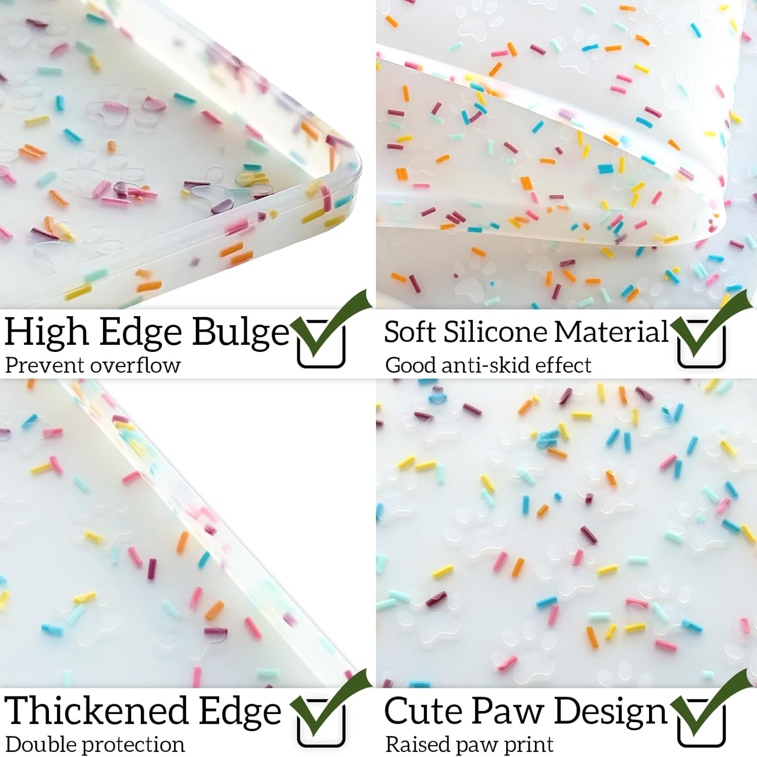 - Neat & Mess-Free: Raised edges with our dog placemat effectively prevent residue spills and splashes, letting mess keep away your floors. The thicker cat mat is perfect for keeping your home clean and tidy. Reduce cleaning time and pressure.