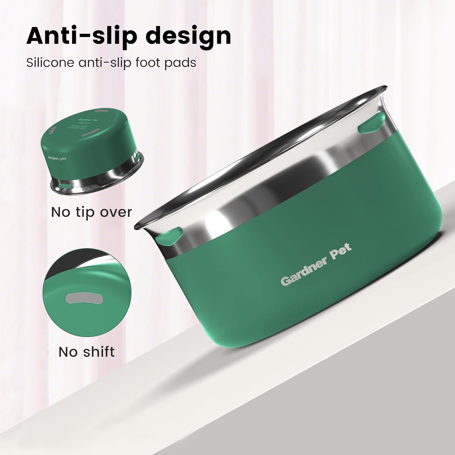 - Anti-Slip Design: Non-slip pads on the base ensure stability, preventing the bowl from tipping over or sliding, no matter how active your pet is.