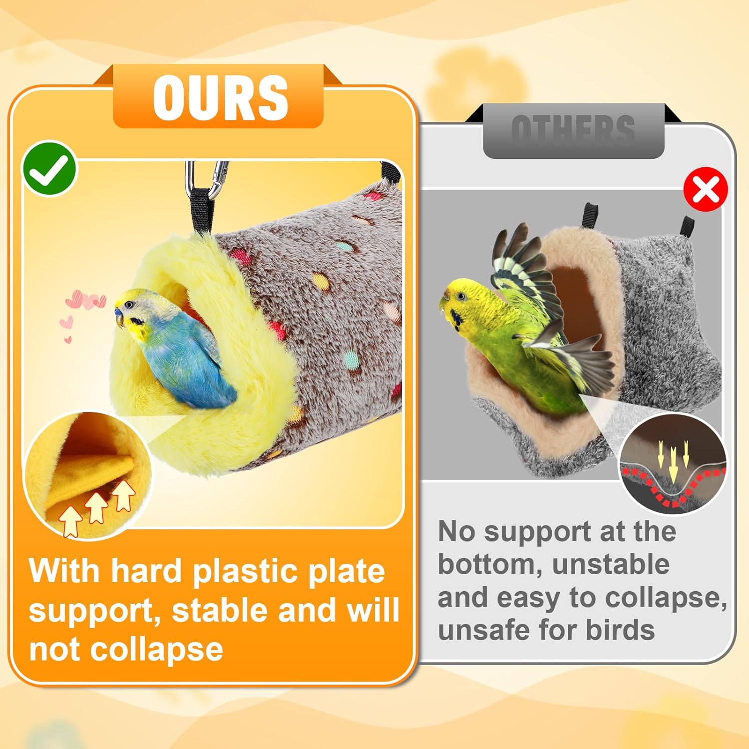- Great Gift: The bird hammock's opening is reinforced with wire to maintain its shape. The soft fabric adds warmth, making it a perfect gift for family and friends who keep parrots or birds. Their feathered companions will surely love it!