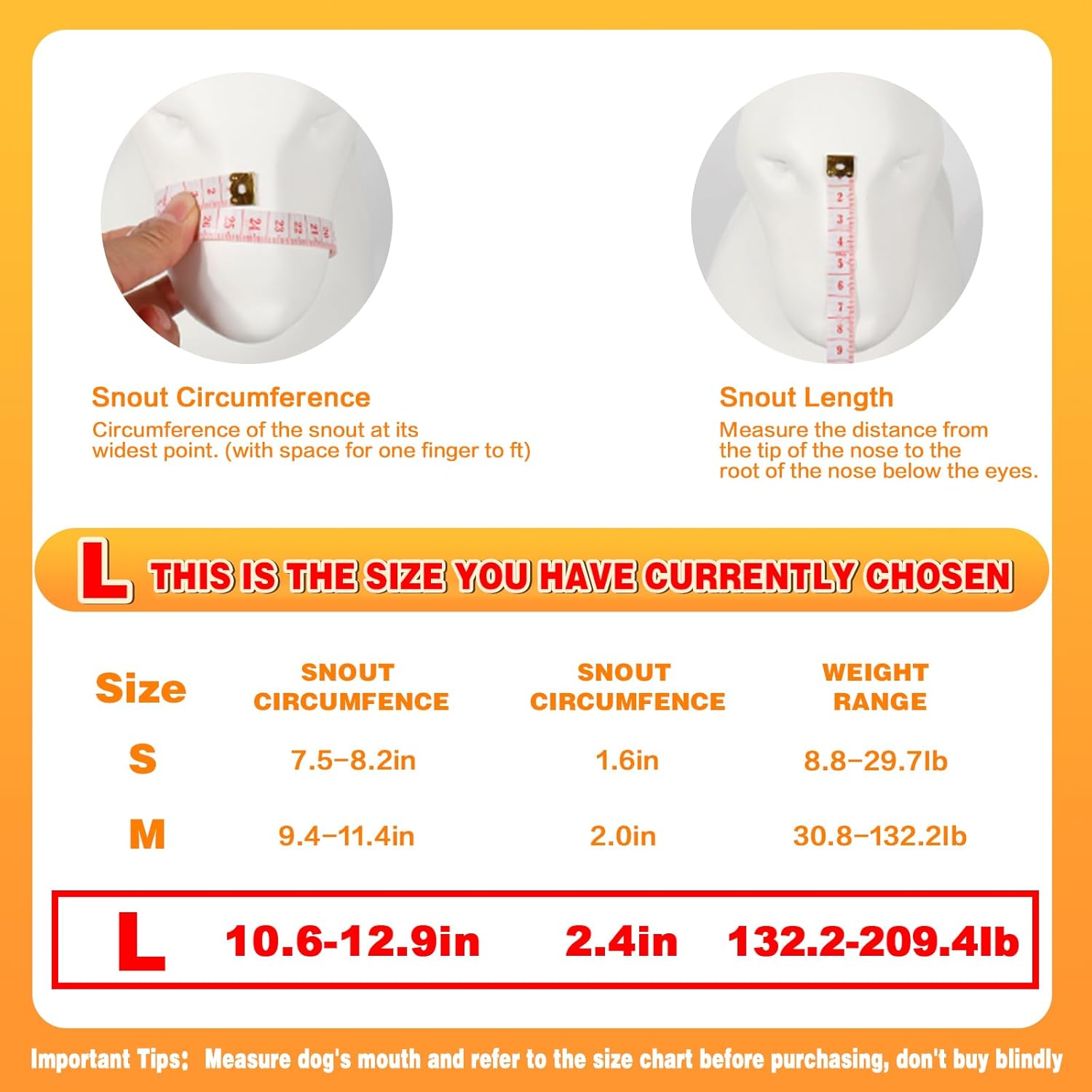 - 【Size Option: L (Circumference: 10.6''-12.9'' in)】Size S is suitable for large dogs, such as Beagle and Corgi etc. Please make sure to measure the dog's snout before purchase and refer to the size chart to choose the right size. If you have any questions about product quality or size, please feel free to contact us.