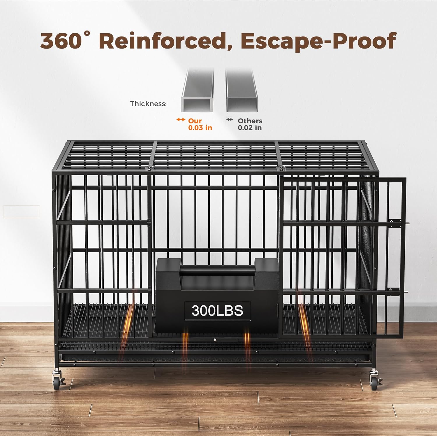 48"/38" Dog Crates for Large Dogs, Upgraded 4 Lockable Wheels, Removable Door, Dog Kennel Indoor, Max Load 300Lbs, Easy to Clean, Removable Tray, XL Dog Cage for Large and Medium Dogs