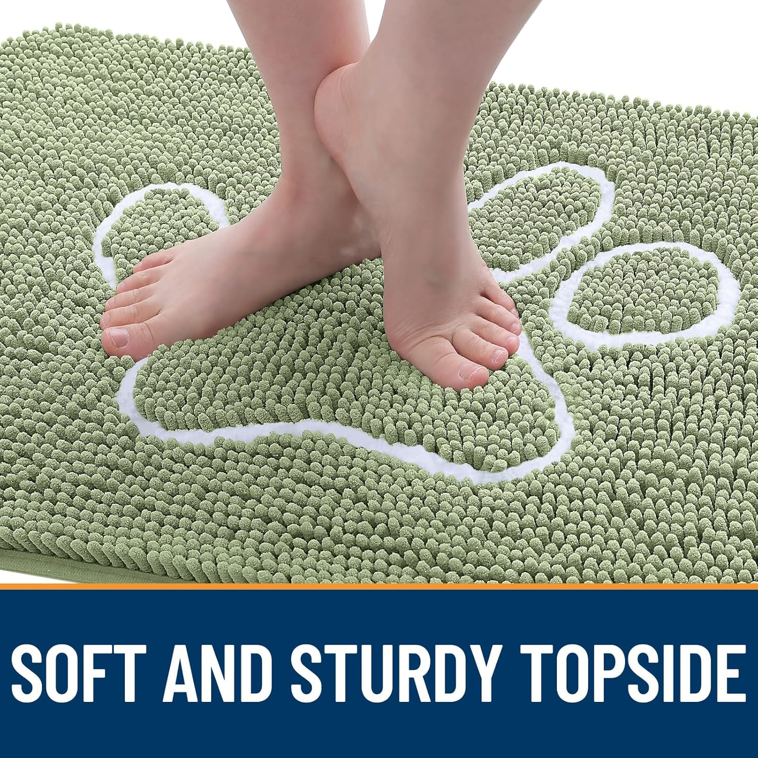 OLANLY Door Mat for Muddy Dog Paws 24x16, Ultra Absorbent Chenille Mud Doormat with Paw Print Design, Non-Slip Washable Doormat for Indoor Entryway, Quick-Dry Pet Bed Mats for Dirty Dogs, Sage Green