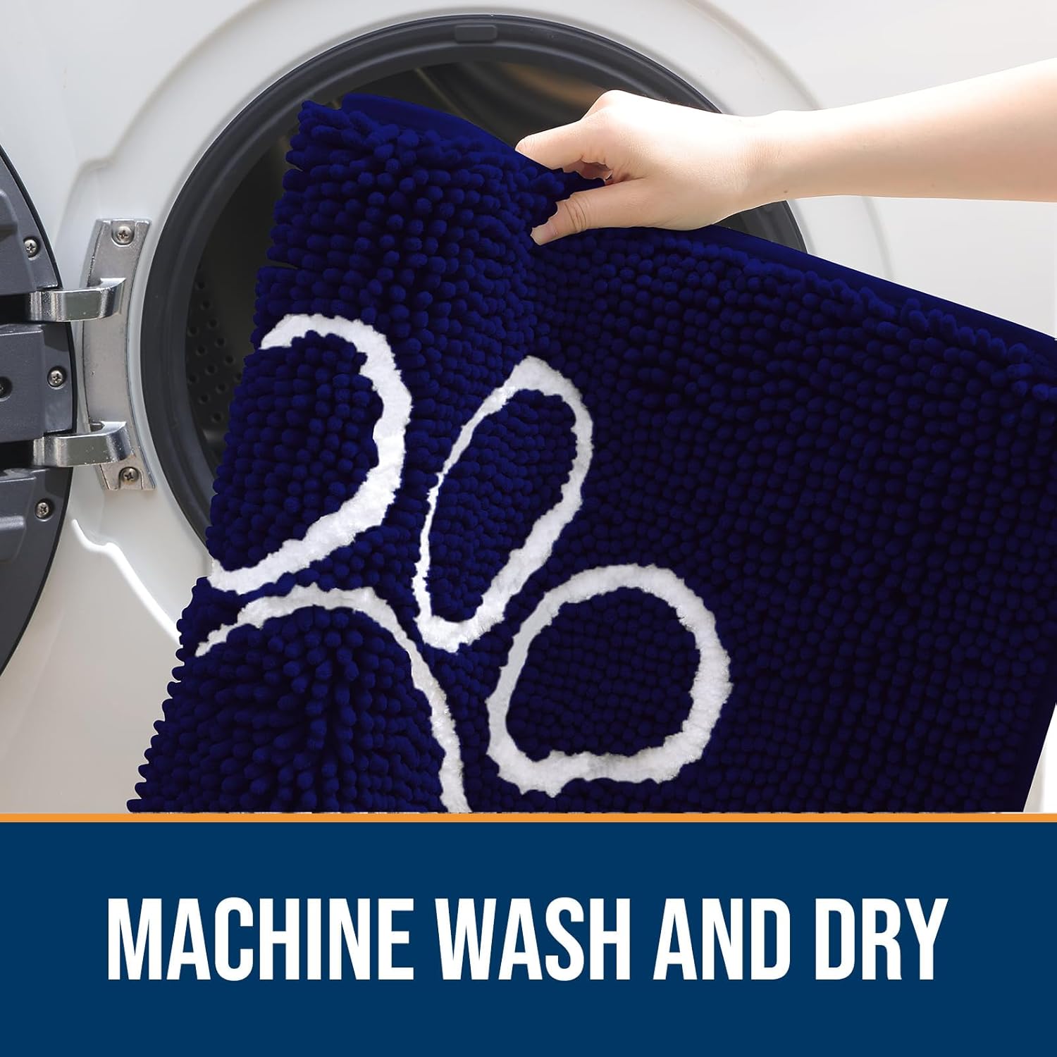 OLANLY Door Mat for Muddy Dog Paws 59x35, Ultra Absorbent Chenille Mud Doormat with Paw Print Design, Non-Slip Washable Doormat for Indoor Entryway, Quick-Dry Pet Bed Mats for Dirty Dogs, Navy Blue