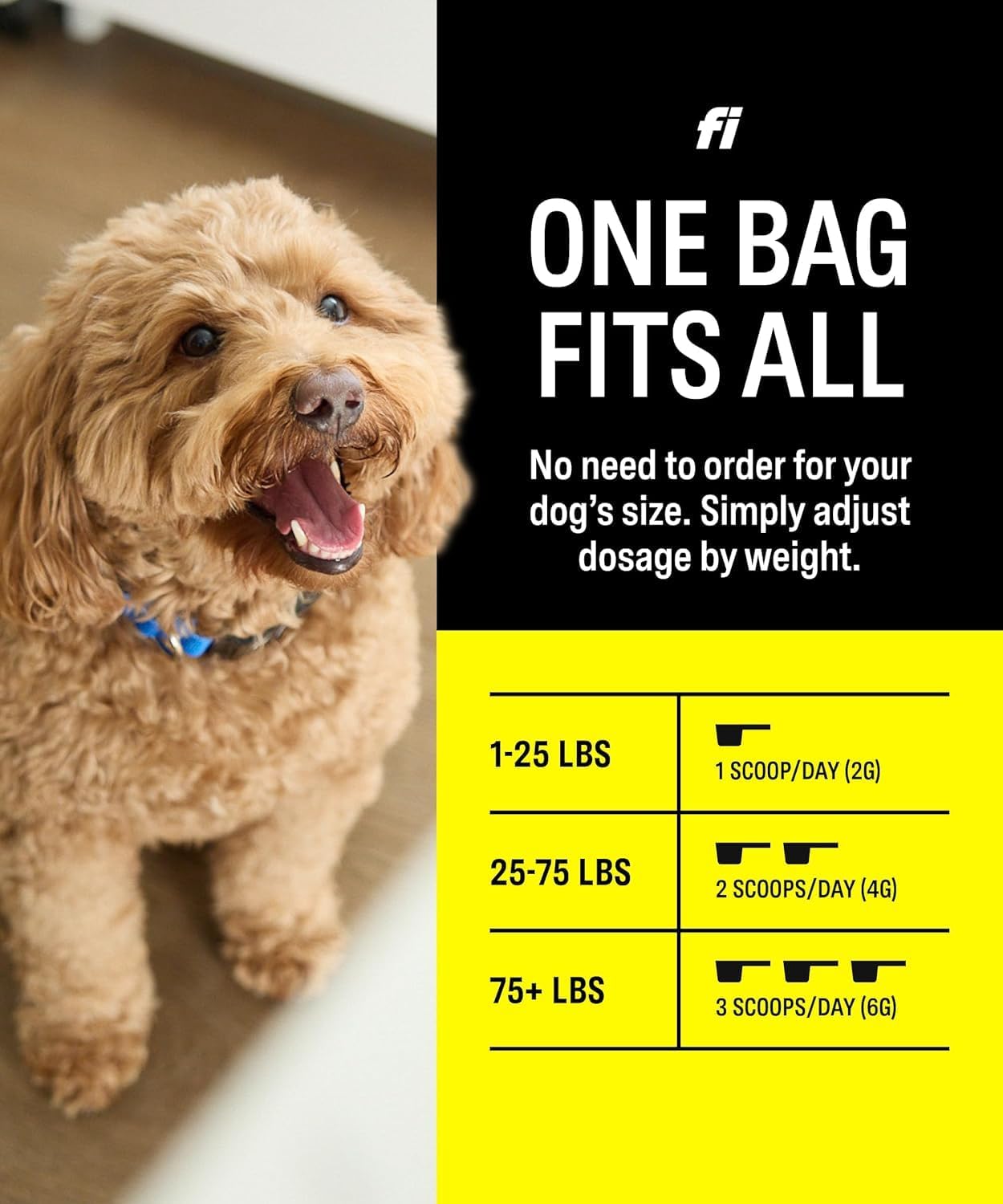 - Complete Daily Support with a Dog Health Supplement – Fi’s daily dog supplement supports joint health, digestion, immunity, and overall well-being, making it a top choice for those looking for daily support to maintain their dog’s health.