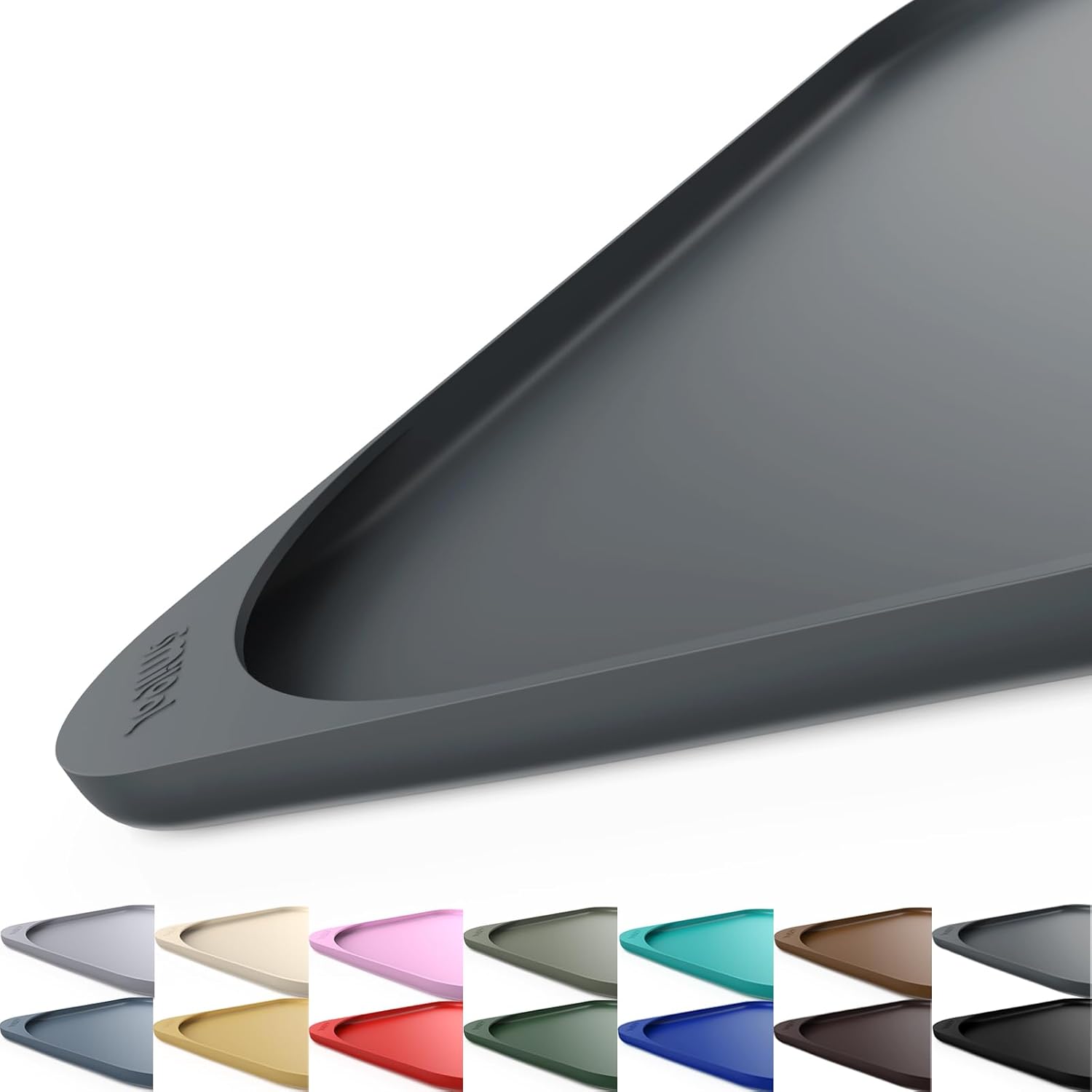 Silicone Pet Feeding Mat with Raised Edge & Residue Collection Pocket for Food and Water, Dog Bowl Mats, Cat Bowls Placemat with High Lip for Floor Waterproof, 22 x 14 x 0.8 Grey