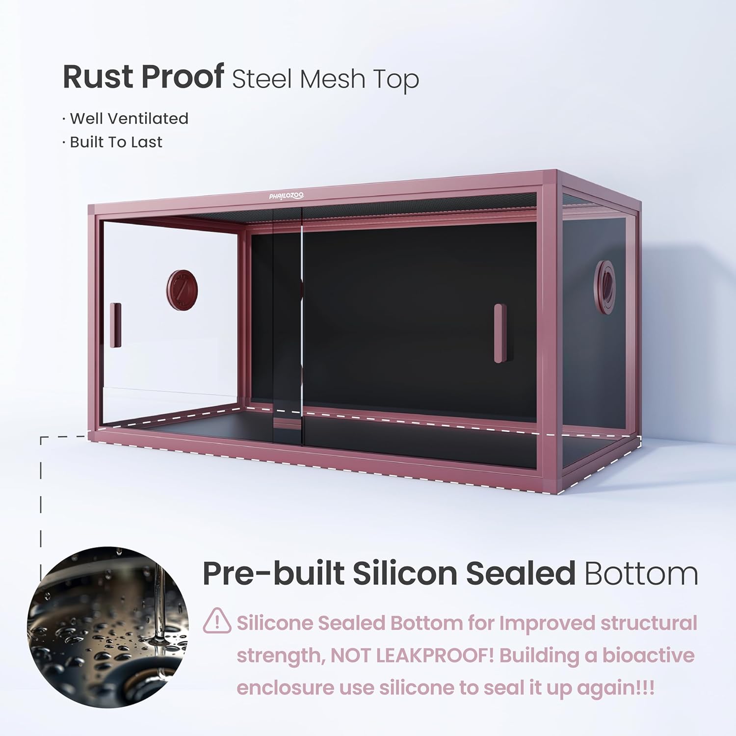 - 【Caution】Silicone sealed bottom for improved structural strength, NOT LEAKPROOF! Building a bioactive enclosure use silicone to seal it up again!