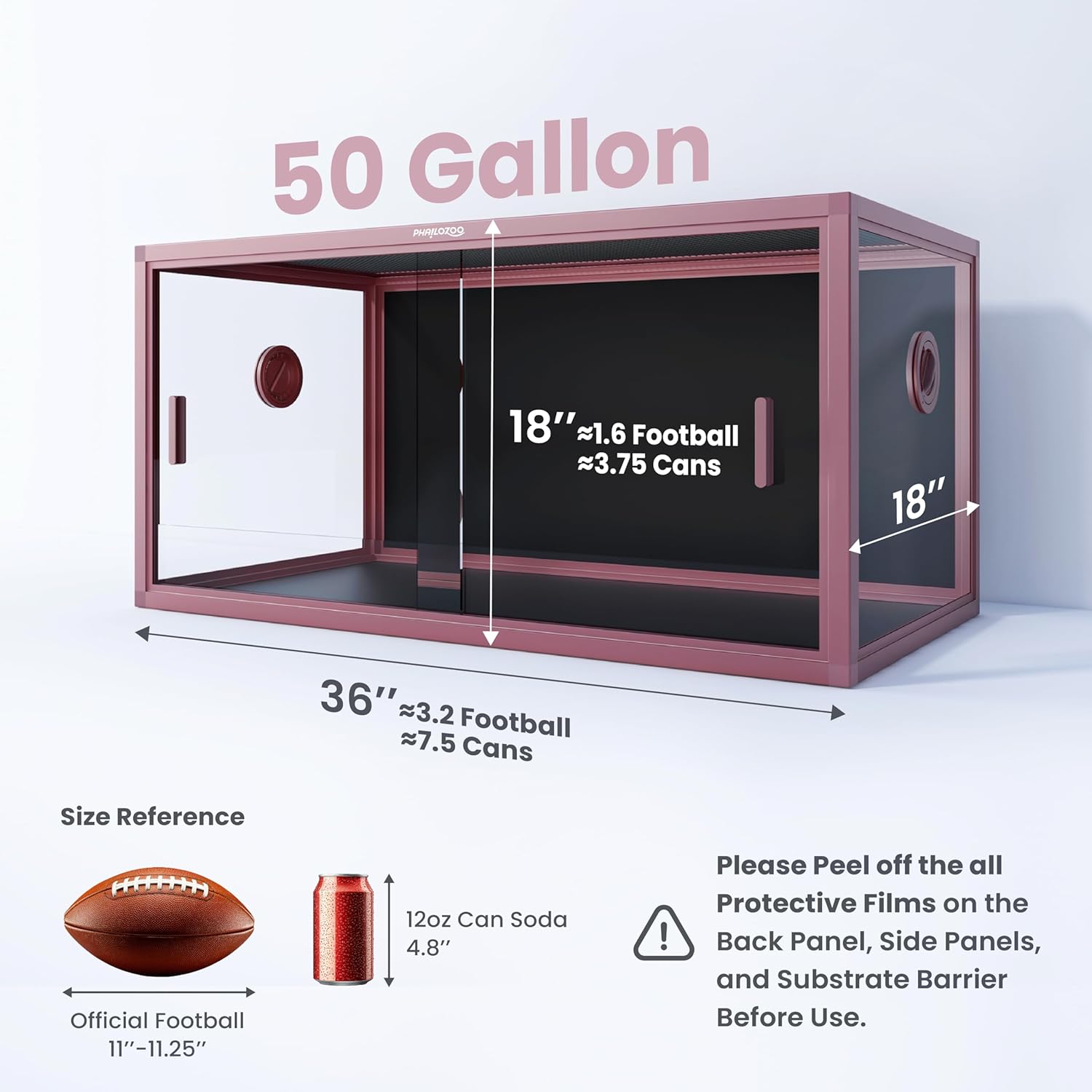 - 【Size Matters】Phailozoo 50 gallon reptile tank measures 36''Lx18''Wx18''H, perfect for desert and rainforest bioactive setup, such as bearded dragon tank, snake tank, and lizard tank. Spacious playground for your beloved reptiles to explore and thrive while being safe.