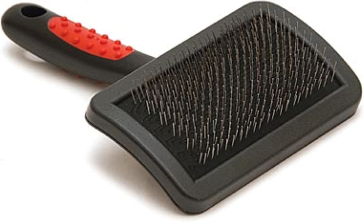 Jeffers Pet Hard Pin Universal Slicker Brush for Dogs & Cats – Firm Bristles, Curved Head for Tough Mats & Tangles, Non-Slip Grip, Best for Thick Coats, Heavy Matting – Black, Red - Small