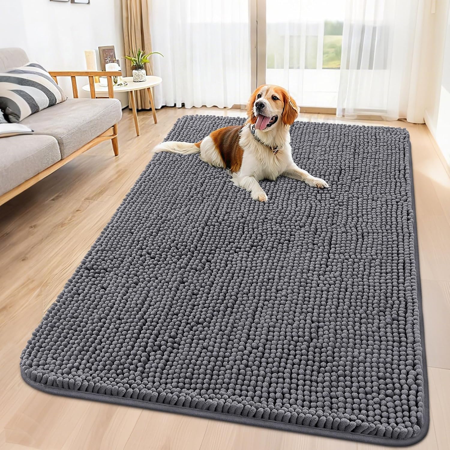 Smiry Dog Door Mat for Muddy Paws 59x35, Absorbs Moisture and Dirt Doormat, Non-Slip Washable Quick Dry Chenille Front Door Mat Indoor Entrance, Entryway Carpet for Inside Floor, Dark Grey