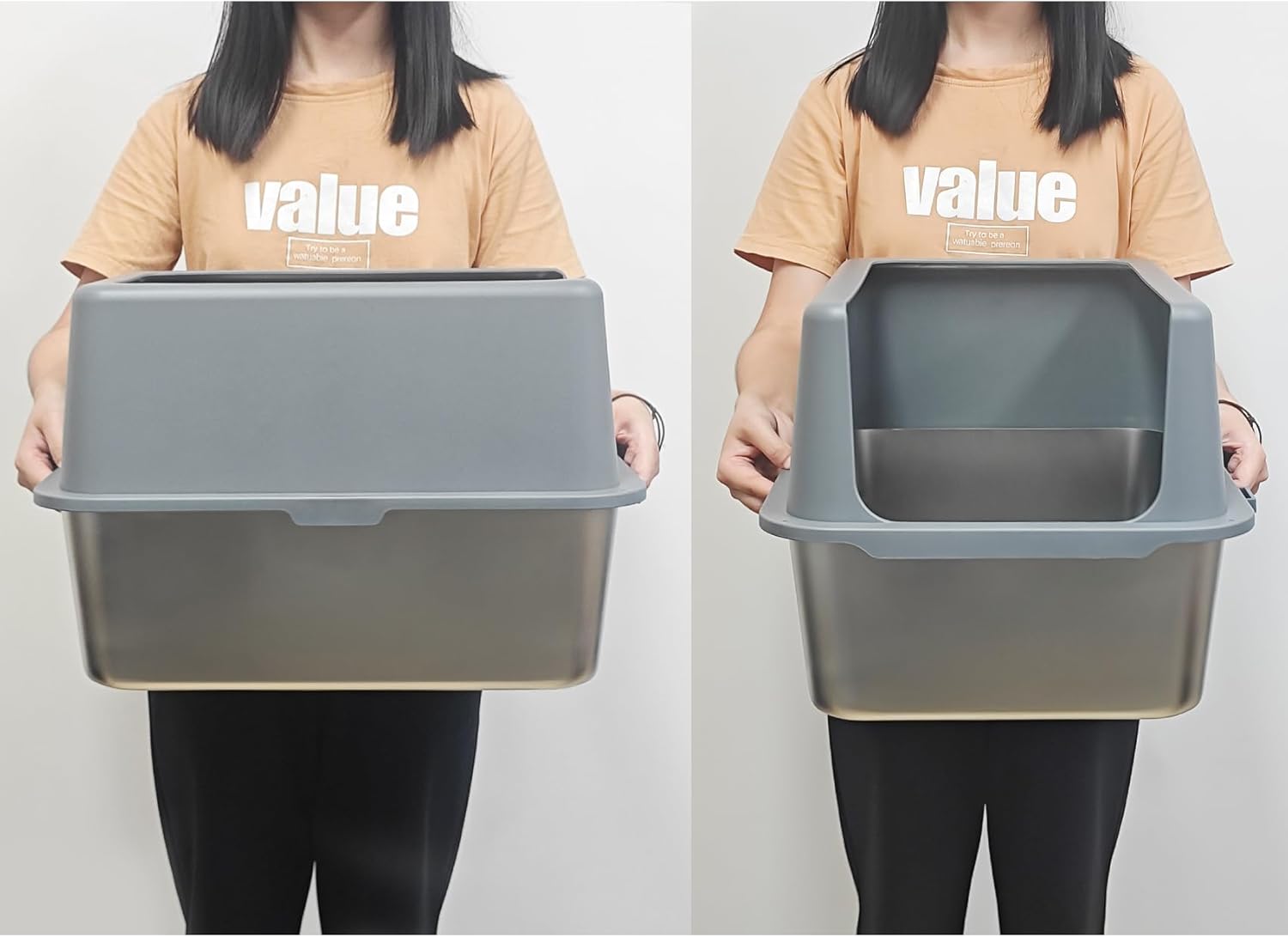- Sturdy Stainless Steel Material:Stainless steel cat litter box with lid is made of high quality stainless steel metal, which is durable and has a long service life. Don't need to replace the steel cat litter box frequently. The stainless steel litter pan also features odorless, non-stick bottom, non-slip, no residual stains and smooth surface.