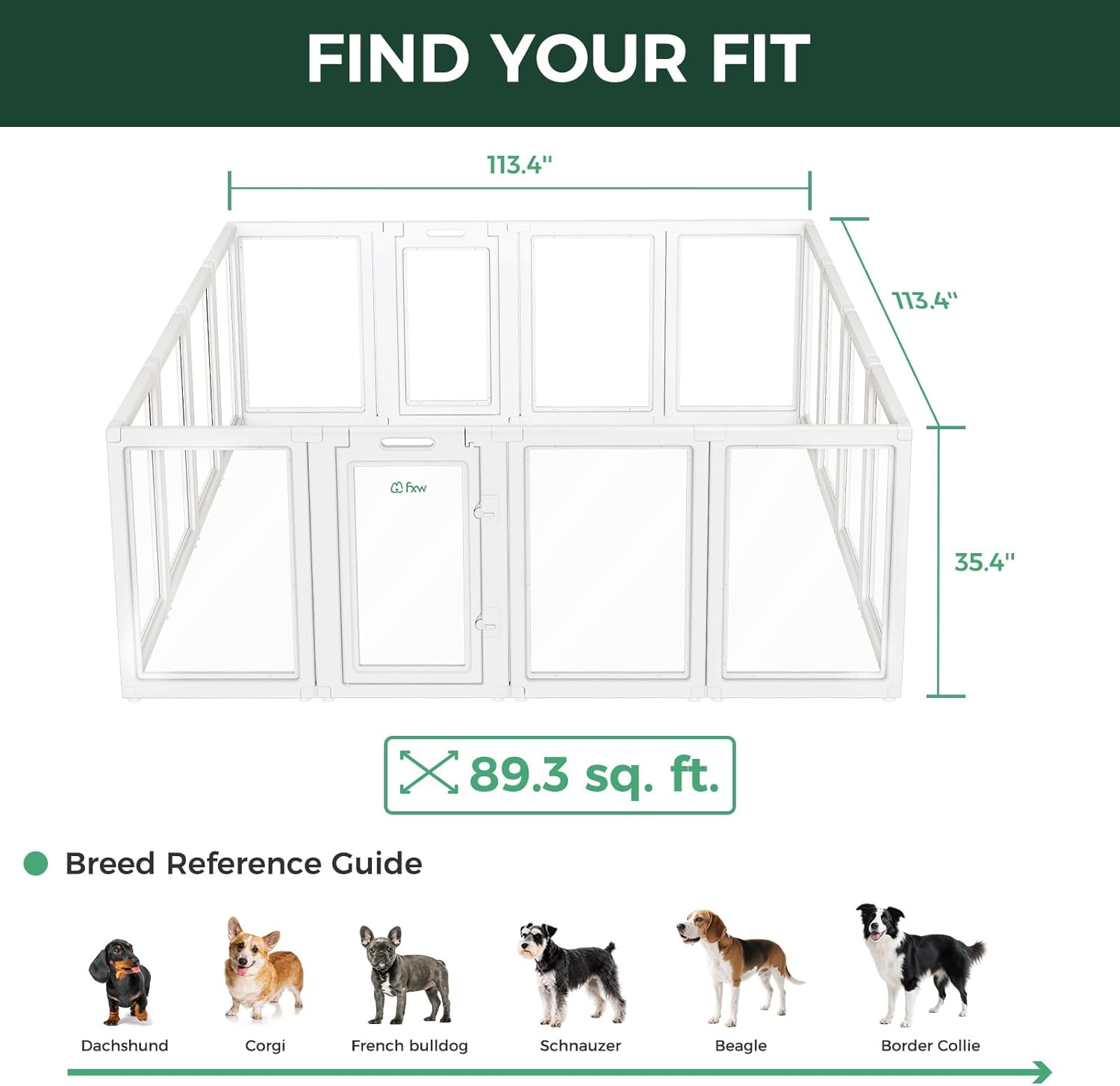 - Escape-Free, Safe Play: Transparent and seamless panels create a secure playpen to keep energetic dogs safely inside, preventing them from climbing out or getting their paws stuck in gaps.