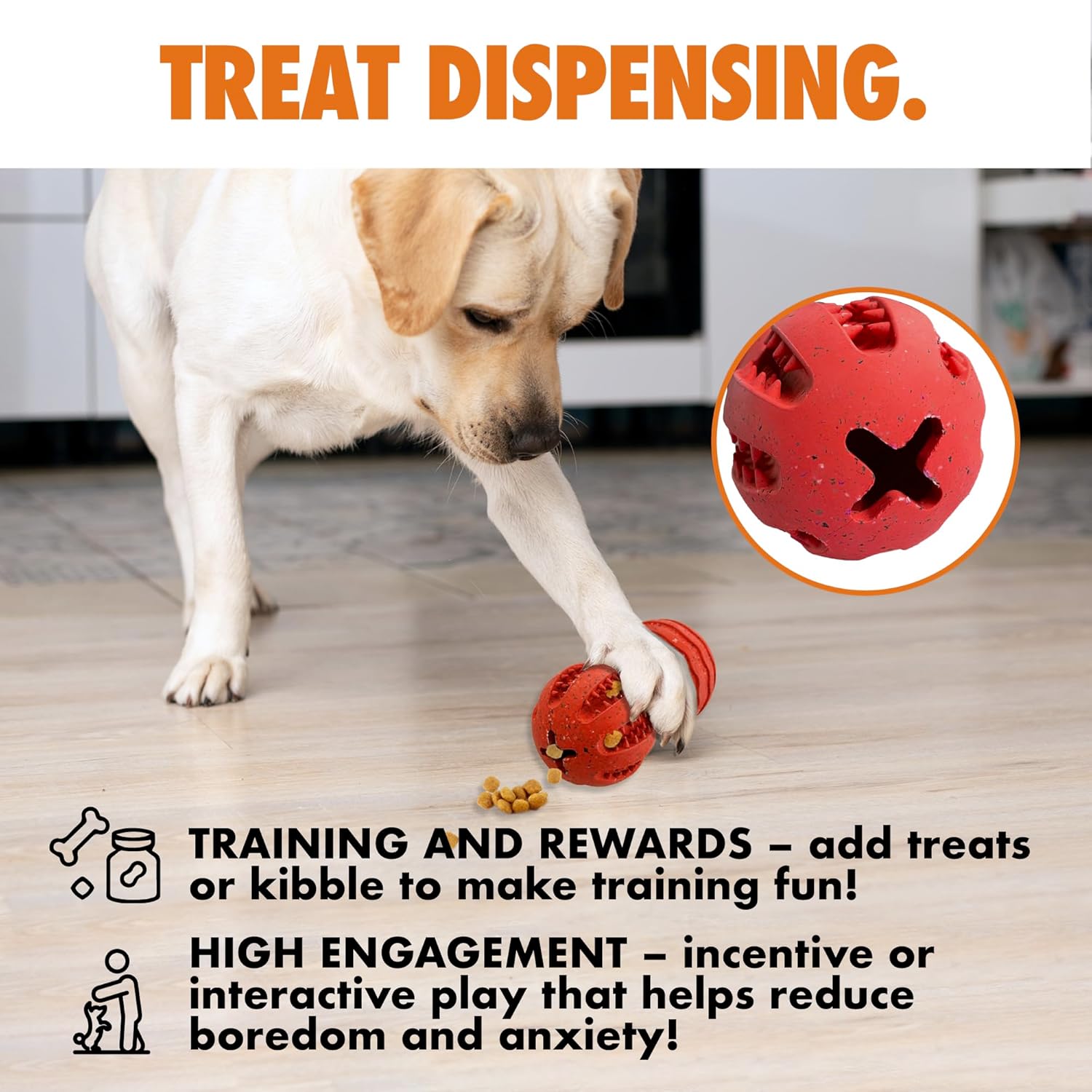 - ENGAGES NATURAL PLAY INSTINCTS: This dog treat dispenser toy encourages active play, problem-solving, and extended engagement. Whether used for fetch, solo play, or treat-releasing fun, it provides an exciting way to keep your dog entertained. Ideal for pet parents looking for dog stimulation toys that help support their pup’s natural instincts for chasing, chewing, and foraging.