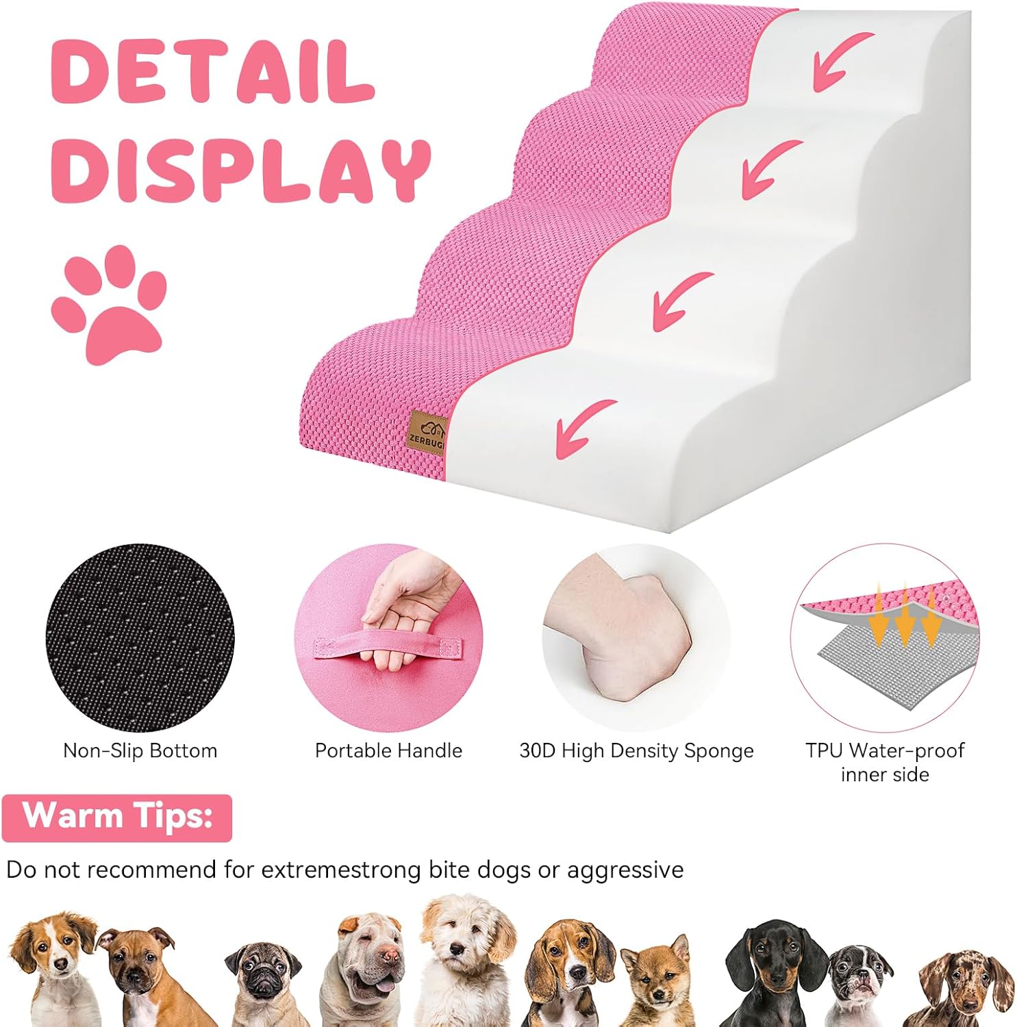 - Multi Sizes Fit Every Need: Zerbuger foam dog stair is not suitable for large dogs, please use it for pets under 50lbs! 3-steps are suitable for chairs and couches up to 20inch, 4-steps are suitable for high sofas, beds and window up to 25inch. Please confirm whether the size is suitable for your love pet first.