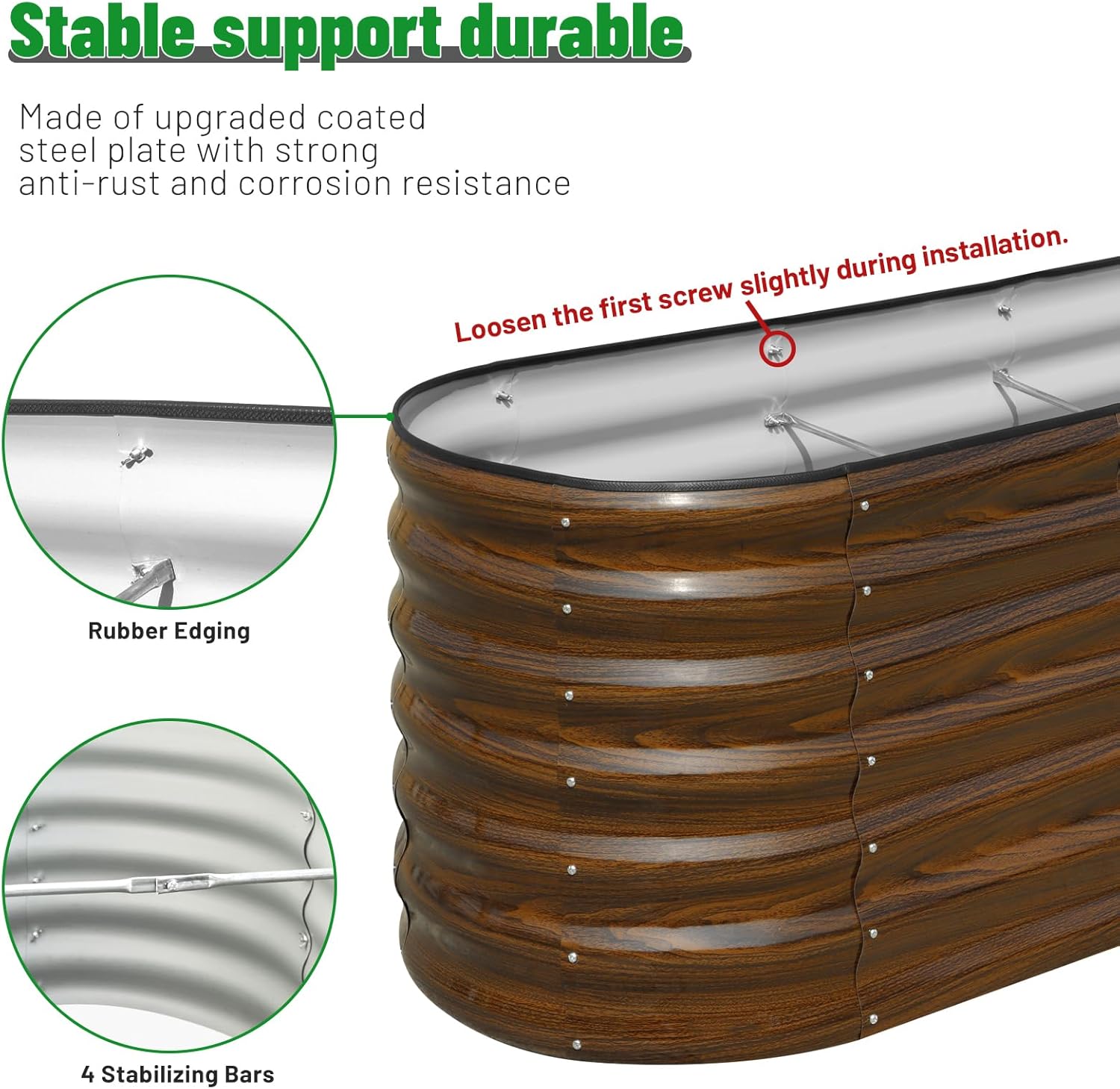 SnugNiture Galvanized Steel Raised Garden Bed, 6x2x2 ft, Outdoor Oval Deep Root Planter Box for Growing Vegetables, Flowers and Fruits