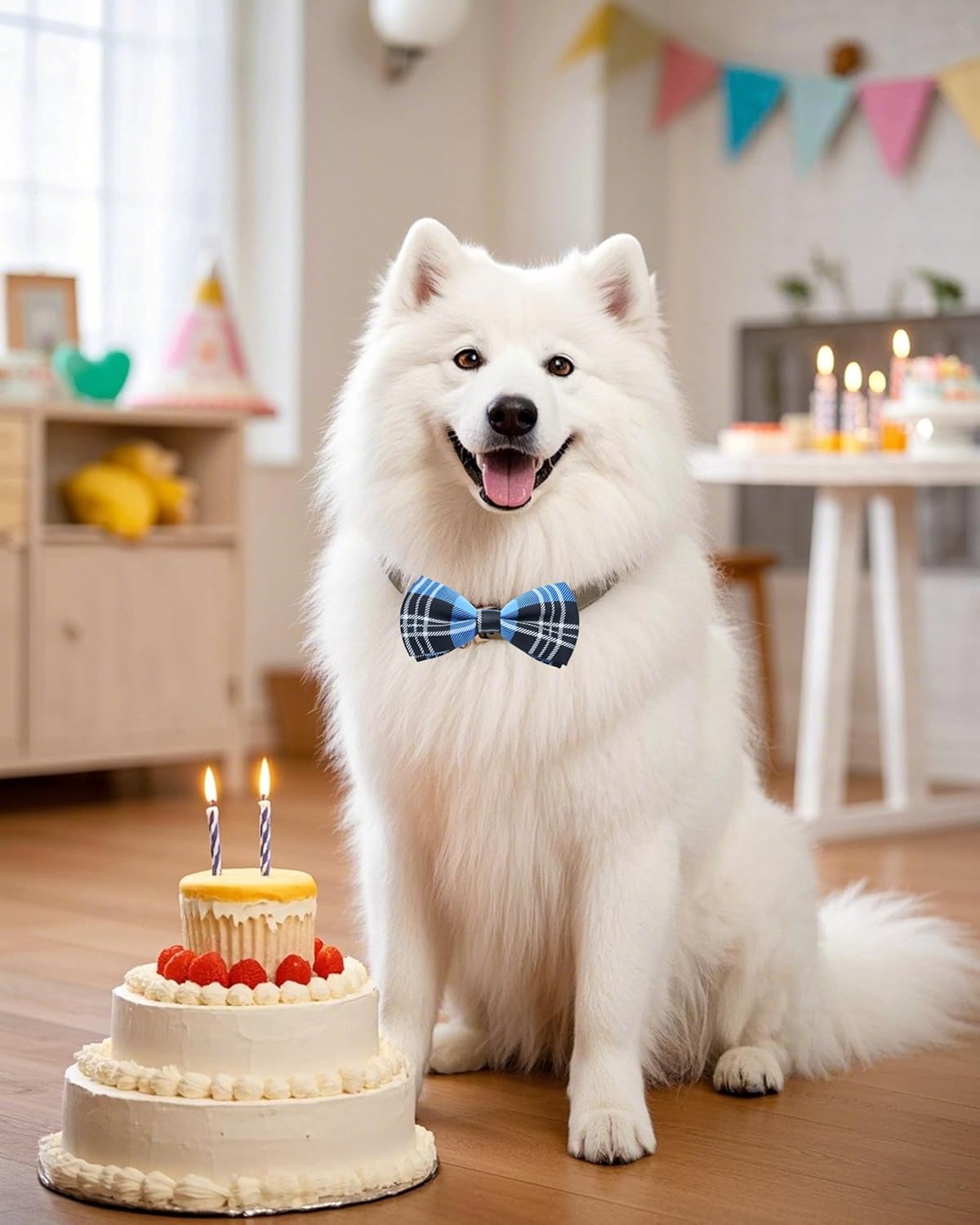 PET SHOW 8 Pack Plaid Big Dogs Collar Bow Ties for Medium Large Dogs Collar Charms Accessories Slides Attachment Bowties for Birthday Wedding Parties Assorted