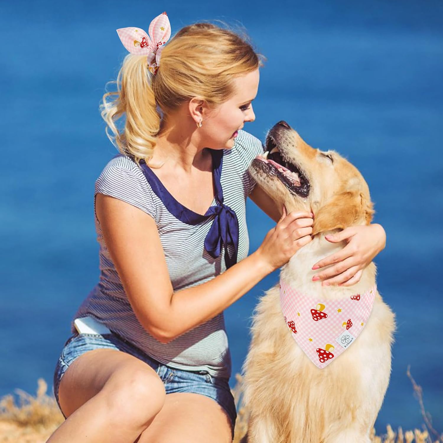 - Matching Bandana and Scrunchie Set- It’s full of love when your pets is wearing the pink plaid bandanas and you are wearing the bow scrunchies. When traveling, sleeping, taking photos or daily warking, adorable dog spring bandana and scrunchie is a pretty accessories. The the hair tie can be worn as a wrist accessory and hold your hair. Beautiful dog drool bibs and scrunchie with pink buffalo plaid and mushrooms pattern, it’s nice photo props.