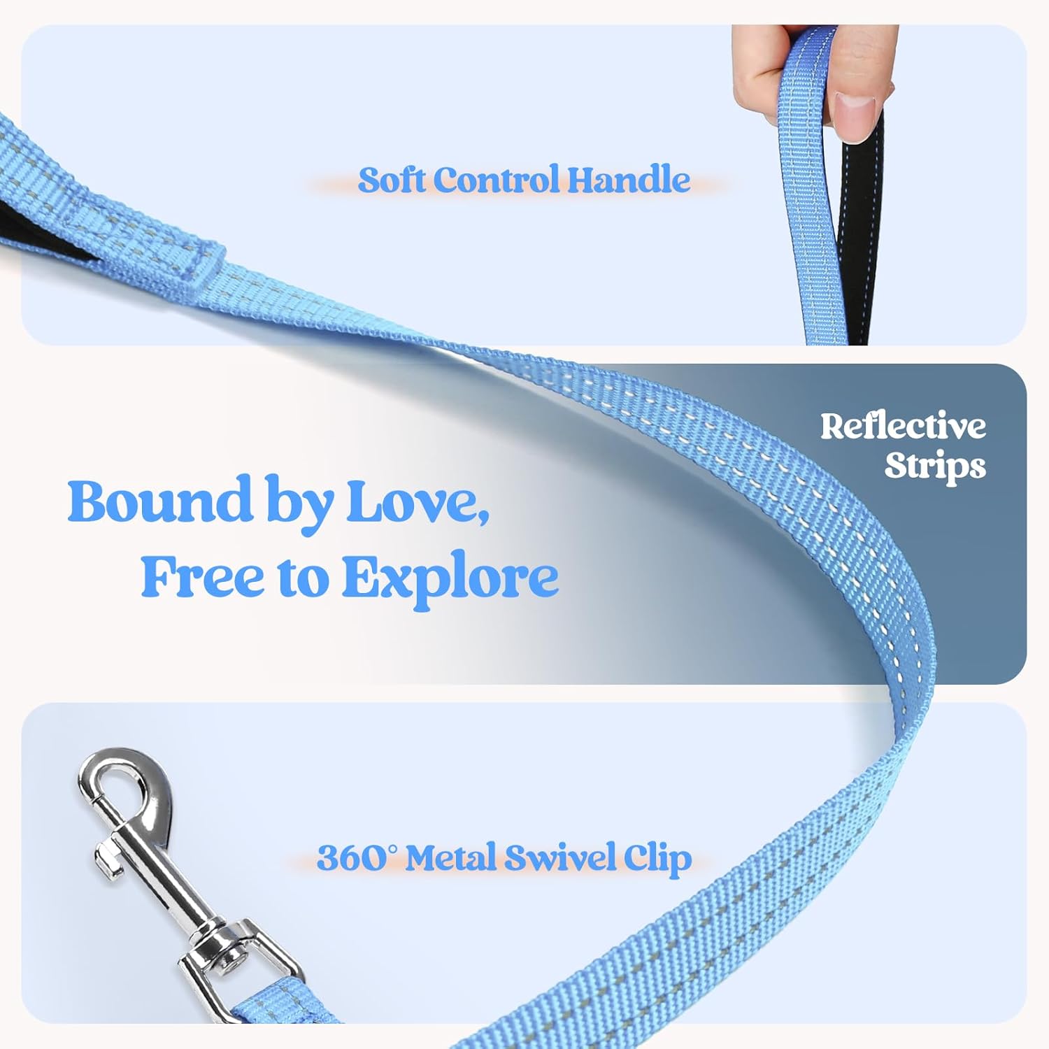 - Dog Harness with Leash Set:The color-matching harness and leash with reflective bands make it fashion and visible for pet outing. The leash is 5.15ft in length, with an anti-tangling clip and a palm-friendly handle
